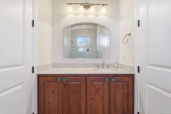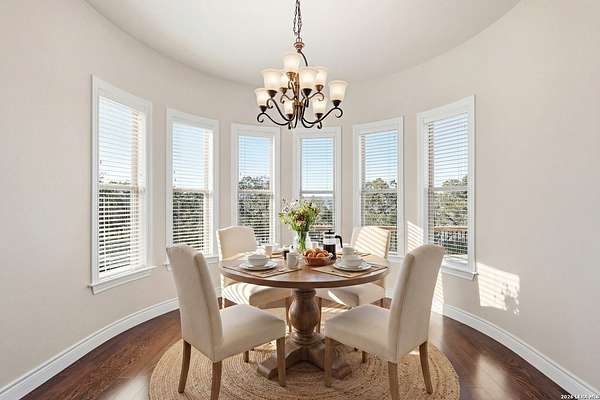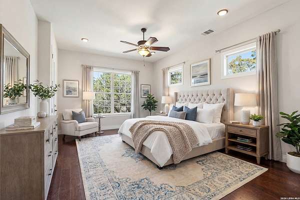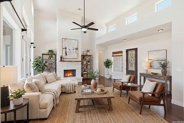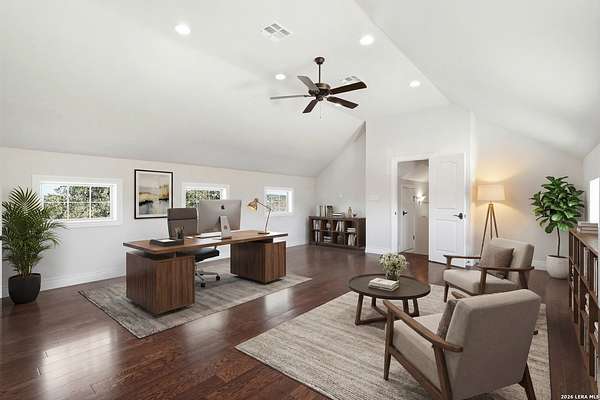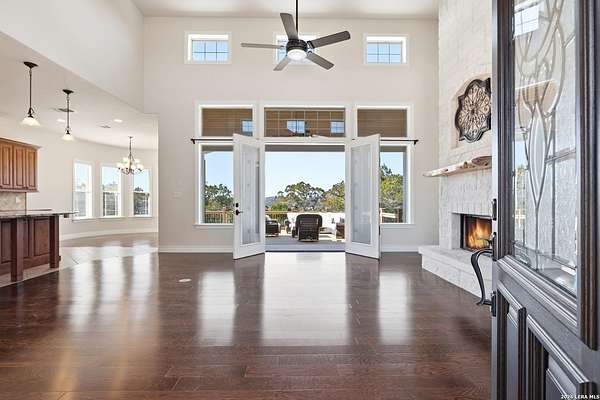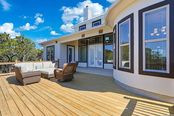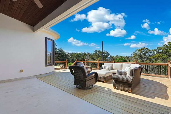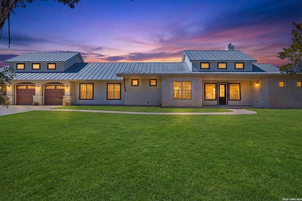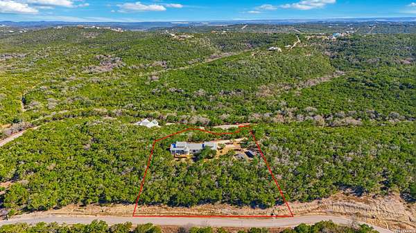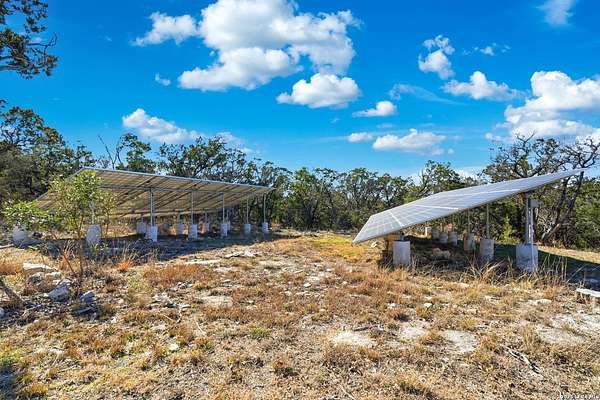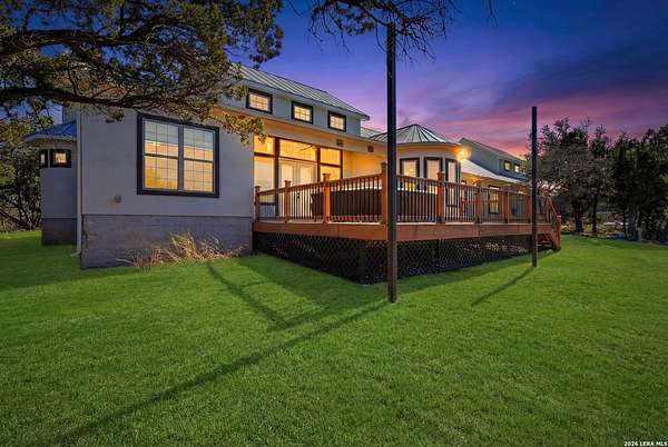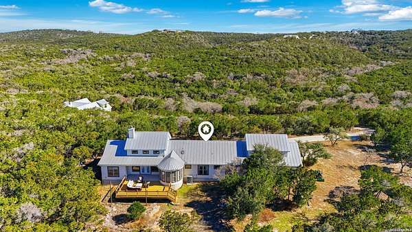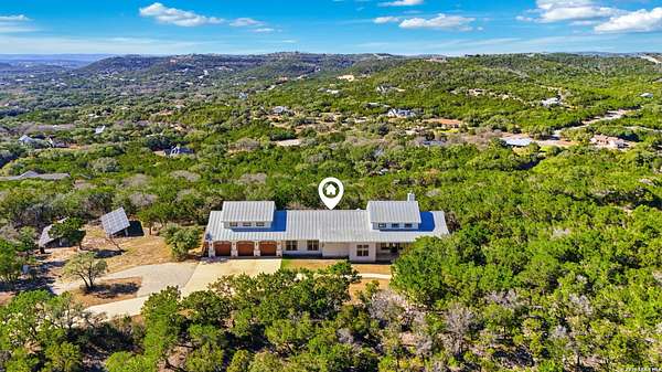 Perched at the peak of one of the highest ridges in the gated community of Dancing Bear Ranch, this exceptional property offers unmatched privacy and breathtaking Hill Country views that stretch for miles. Situated on 3.5 scenic acres, the home captures the beauty, tranquility, and wide-open skies that define true Hill Country living, all while remaining within convenient driving distance of San Antonio. Designed to live like a single story, the thoughtfully planned one-and-a-half-story layout features all bedrooms and bathrooms on the main level, with an upstairs loft or game room that provides flexible space for a media room, home office, or guest retreat. The home has been recently refreshed with updated exterior paint and includes a newly installed back deck, perfectly positioned to take in the sweeping ridge-top views and spectacular sunsets. Energy efficiency is a standout feature, with solar panels helping to reduce utility costs and support sustainable living. Residents of Dancing Bear Ranch enjoy access to outstanding community amenities, including a neighborhood pool, sports courts, and a private lakeside park with a boat launch and pavilion along Medina Lake. Located in Medina County, known for lower property tax rates, this rare ridge-top retreat offers an ideal combination of privacy, efficiency, panoramic views, and the peaceful Hill Country lifestyle.