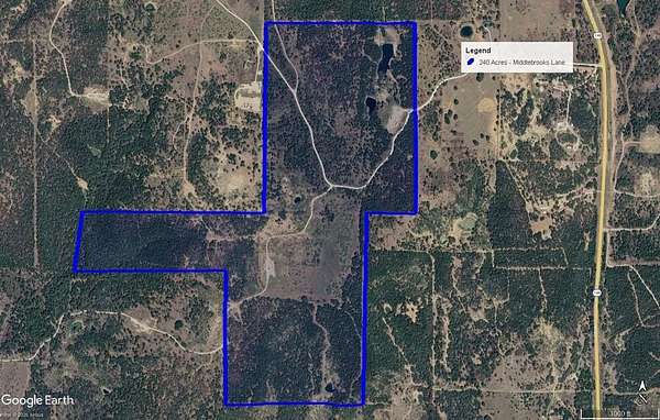 Easements. The property is accessed from a quarter-mile easement off Middlebrooks Lane. There are also two access easements running on the north part of the 240 acres used by two neighbors to the west.