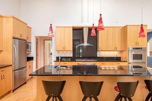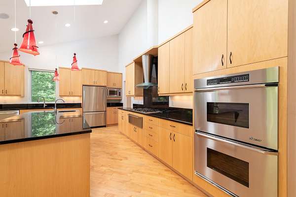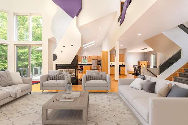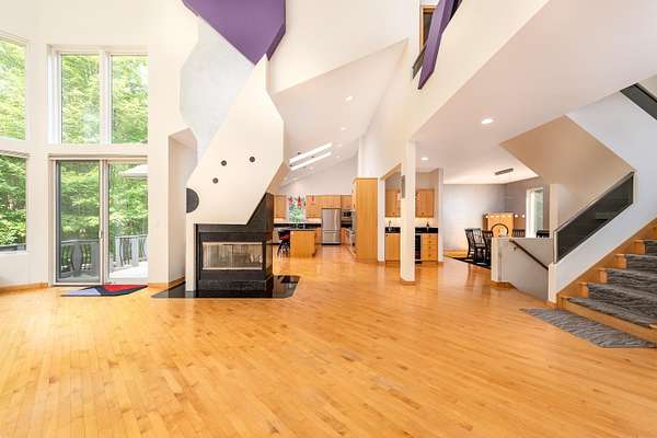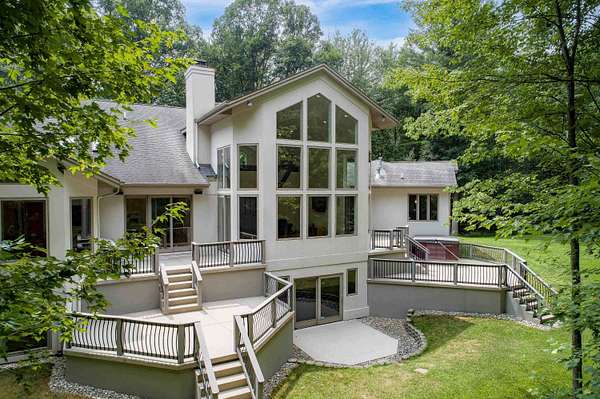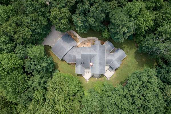A true architectural statement, this Bill Phillips-designed estate stands among the most exceptional homes currently on the market. Set on 5.54 private, wooded acres, the residence offers four bedrooms and 4.5 baths, blending refined elegance with thoughtful, high-end functionality throughout. The custom main-floor primary suite is a private retreat, exuding understated luxury. Highlights include a personal fireplace, private deck, and a spa-inspired bath complete with its own fireplace, soaking tub, expansive shower, and exceptional closet space-- with bespoke shoe storage. Every detail has been curated to support a sophisticated, yet livable lifestyle. Designed with both entertaining and everyday comfort in mind, the main living areas overlook the serene acreage beyond. Extra-thick Canadian maple flooring flows throughout the home, providing a warm, timeless foundation that beautifully supports transitional decor. A striking three-way gas or wood-burning fireplace anchors the space, while floor-to-ceiling windows flood the interior with natural light. The gourmet kitchen is nothing short of stunning, featuring Dacor professional-grade appliances, expansive granite countertops and backsplash, a designer hood vent, generous pantry space, and a custom cookbook cabinet. Dining options are equally impressive, offering seamless transitions from the statement island to a quiet eat-in area, and on to the formal dining room. A butler's pantry with upscale wine refrigeration, abundant storage, and refined lighting provides a second serving area ideal for entertaining. The finished lower level extends the home's versatility, offering a fourth bedroom with private access to a full bath, a dedicated fitness room, workshop, walk-out access to the back patio, and tremendous storage. From construction quality to the strategic sourcing of materials, this home reflects a level of professional design and craftsmanship that is both evident and enduring. The oversized three-car garage easily accommodates more than vehicles, while plans for future expansion are already in place: a designated pole building site with underground electric and a prepared driveway await. Outdoor living is equally remarkable. Four decks invite you to relax, entertain, or simply observe the deer and turkeys that frequent the property--all while enjoying complete privacy and natural beauty. Perfectly positioned just seven miles from shopping, medical offices, and schools, this estate delivers the rare balance of luxury living and peaceful seclusion. A home of this caliber, scale, and setting is seldom available. Ideally suited for executives and buyers relocating, this property offers the exceptional design, refined finishes, and convenient proximity to essential amenities that discerning buyers seek. It is a rare opportunity to transition seamlessly into luxury living without compromise.