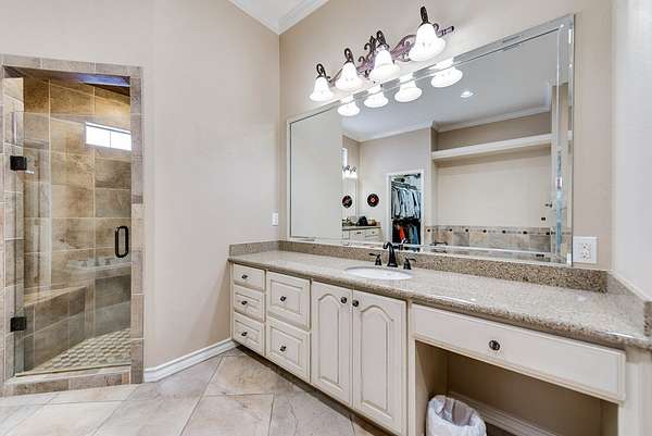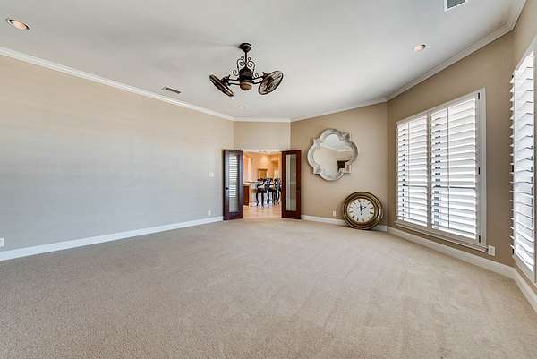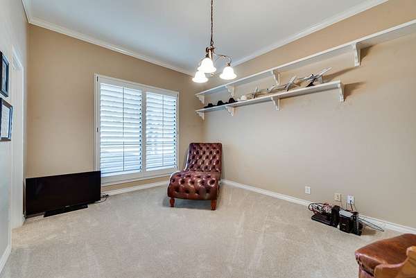 - Auto Garage Opener, Book Cases, Carpeting, Ceiling Fan(s), High Ceilings, Jetted Tub, Pantry, Reverse Osmosis-Owned, Security System-Owned, Shades/Blinds, Skylight(s), Tile Flooring, Water Softener-Owned, Wood Shutters