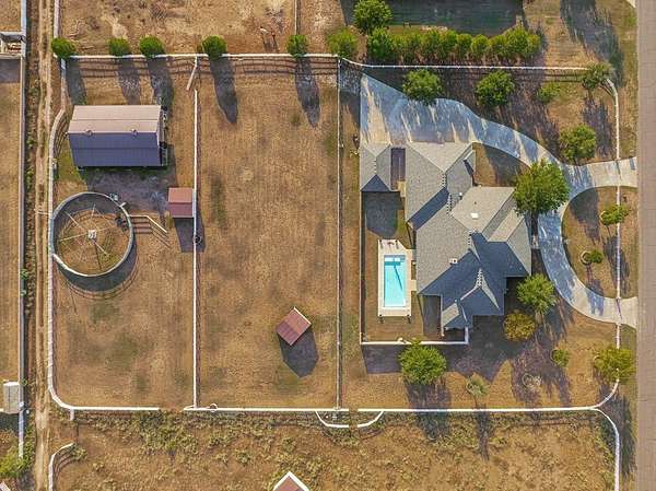 - Barn/Stable, Fence-Vinyl, Fence-Wood, Inground Pool, Patio-Covered, Sprinkler-Auto, Storage Shed