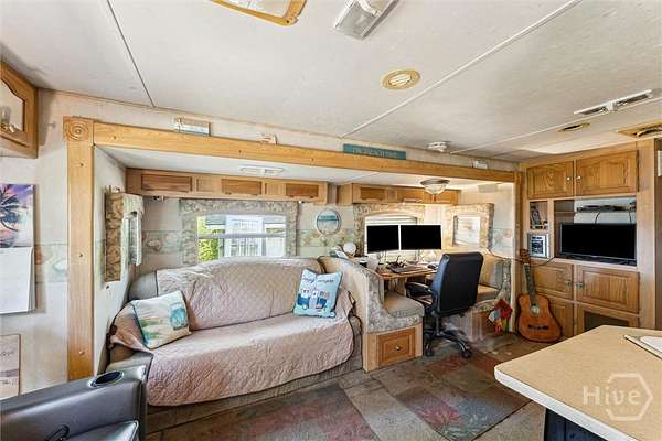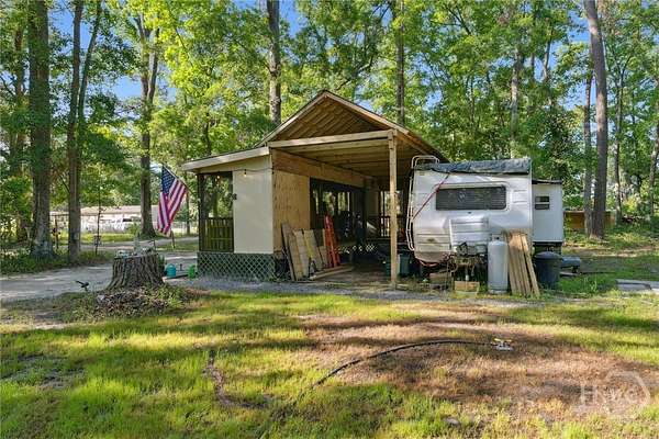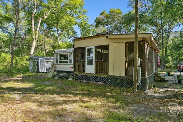 Discover this charming .58-acre property offering versatile waterfront access to docks, lakes, perfect for outdoor enthusiasts and those seeking a serene retreat. The land features a small concrete slab on one end, ideal for future building or outdoor setups. Improvements include a sturdy storm shelter with a new roof, a spacious enclosed patio with a tin roof, water, electricity, additional storage space and complete with a lovely sunset deck-perfect for relaxing evenings.. Additionally, the property comes with a cozy 1-bedroom, 1-bathroom RV. If you prefer just the land, that option is negotiable. Whether you're looking for a scenic getaway or a potential build site, this property offers flexibility and waterfront charm.