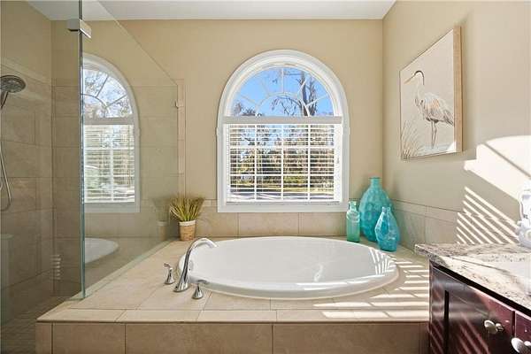 HOT NEW LISTING in gorgeous Spartina Landing! Live the coastal lifestyle on 3 private, wooded acres in Liberty County! This spacious 5BR/3.5BA home offers the perfect blend of privacy, function and lifestyle. Homes like this do NOT come available often. Step inside to an open-concept layout featuring hardwood flooring, a cozy gas fireplace and a beautifully updated kitchen with granite countertops, Large island/bar and stainless steel appliances. It's perfect for entertaining or everyday living! The spacious main-level owner’s suite delivers convenience and comfort, while the ensuite offers luxury with a double vanity, separte shower and tub and walk-in closet. Think private retreat. Upstairs, you’ll find four additional bedrooms, including a Jack-and-Jill bath, hall bath and tons of storage plus two attic spaces. Outside is where this one really stands out! Perfect screened-in porch, brick fire pit, garden area, RV hookup with power, and a 2-car garage…all surrounded by peaceful wooded acreage and room to build whatever you else you may need. All that and it gets even better—just a few minute walk to the neighborhood community dock and clubhouse for breathtaking waterfront sunsets, fishing, boating and coastal gatherings. step back and enjoy all this home and community offers.