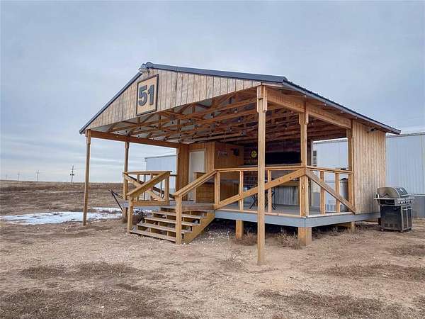 Introducing the 51 Ranch. This 564-acres is nestled off a paved road, and offers a unique blend of natural beauty and modern amenities, making it a haven for both relaxation and entertainment. The property is currently on a Prescribed Grazing CRP agreement with annual payments through 2033. This truly diverse property is filled with all forms of wildlife including large numbers of bobwhite and blue quail, dove, whitetail, mule deer, pronghorn and even elk have even been spotted within a mile of the ranch. Neighboring over 12,000 acres of Optima WMA and NWR along its 3 mile western border, this premiere hunting property assures there is never a lack of hunting opportunity. The land also features several miles of two track roads, 2 ponds (controlled from an electric water pump) and about 17 acres of food plots for local wildlife. On the north end of the ranch, at the end of the paved Mile 51 Road, you'll discover a charming 3-bedroom bunk house with 2 full baths, walk-in cooler (which is able to stay around 40 degrees on even the hottest of days), and a convenient cleaning station on a large concrete pad, ensuring that every aspect of your outdoor experience is both seamless and enjoyable. The outdoor bar and entertainment space provide the ideal setting for hosting hunts and gatherings with friends and family. This space is designed for creating memories and embracing the serenity of the countryside while still enjoying the convenience of modern amenities. This 564-acre ranch is more than a property; it's a lifestyle. Imagine evenings spent under the unspoiled and vast expanse of the western plains sky, while you listen to quail on roost, coyotes as they sound off on their evening roll call and maybe a distant bugling elk looking for love. With its diverse features and thoughtfully designed spaces, it beckons you to create a haven where the beauty of nature harmonizes with the comforts of contemporary living.