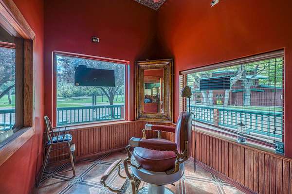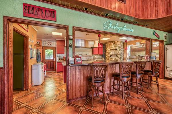 Immediately to your right is the diner with a huge porch out front overlooking the pond and the large 20 acre meadow. Step inside to enjoy a soda from the soda fountain while waiting on a meal prepared in the pizza oven or commercial kitchen. The 1600 square feet of space also includes a barber shop, full bathroom and an entertainment area with projector screen.