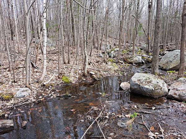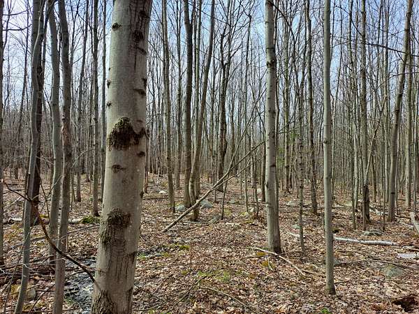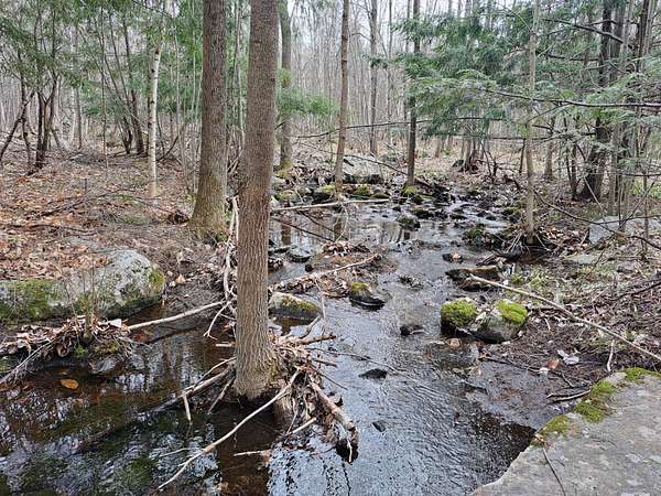 The topography of the Altona Bucks and Birds property is level to rolling, with an unnamed perennial creek flowing near the western boundary. This creek is an important tributary to the North Branch Great Chazy River and is likely to harbor native brook trout. Fishing aside, this creek is an important aesthetic feature, offering the soothing sound of rushing waters. There are 2 other, smaller streams, one perennial at the eastern end of the property, and the other located in the middle of the property. The latter terminates just south of the powerline and would be a great location to construct a pond. The forest was harvested 20-30 years ago, evolving into a young forest of red and sugar maple, white and gray birch, and popple. This young forest is suitable habitat for ruffed grouse, white-tailed deer, and black bear.
