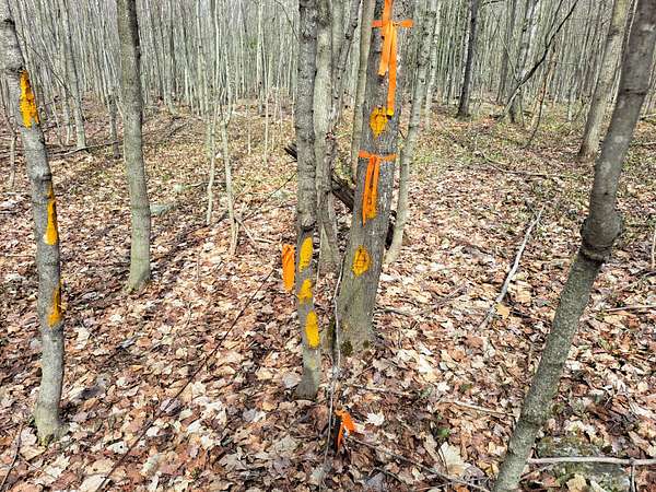 There is a powerline right-of-way (ROW) passing in an E-W direction that occupies ~11 acres. The ground beneath the powerline is owned by the Seller, transferring with the property. While there are some restrictions, there is full access across and under the ROW. Several locations on the ROW could be developed into productive food plots to enhance the hunting experience. This ROW is integral in connecting several hundred miles of snowmobile trails throughout a number of northern Adirondack counties, thus providing the new owner with easy, direct access to the network.