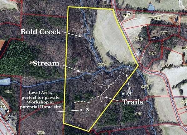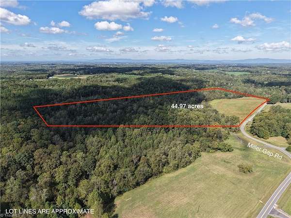 Discover 44.9 acres of serene rural retreat in the scenic core of Surry County, NC--featuring 10 acres of open land and roughly 35 acres of lush woodland. Enjoy more than 1,000 feet of frontage along a paved road, with gently rolling topography. A picturesque creek meanders through the grounds, drawing abundant deer, turkey, and diverse wildlife. Choose from multiple stunning spots for your dream home. Prefer a smaller parcel? The owner is open to dividing into 20- or 24-acre portions--detailed maps forthcoming. Don't wait--call today!