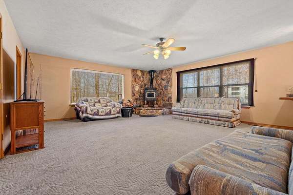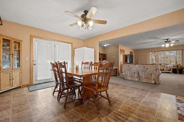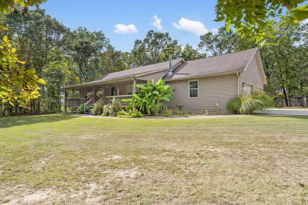 Experience the perfect blend of comfort, space, and rustic character in this welcoming 4-bedroom, 2.5-bath home set on 5 serene acres of gently wooded land, just 45 minutes from Springfield, MO. The charming front porch invites you to slow down, sip your morning coffee, and take in the peaceful surroundings.Inside, the home offers two generous living areas, each featuring a wood-burning stove, ideal for cozy nights in or hosting family and friends. The large kitchen with a gas stove opens nicely to the formal dining room, while the wet bar in the second living space makes entertaining easy and enjoyable. Bedrooms are thoughtfully located across the upper level, main floor, and finished basement, providing flexibility for guests, a home office, or creative space. Recent updates, including a new dishwasher and water softener, highlight the pride of ownership throughout.Outside, you'll appreciate the chicken coop, circular driveway, and abundant storage and parking options, perfect for an RV, boat, or extra equipment. With wide-open space to embrace country living and the convenience of nearby amenities, this property truly offers the best of both worlds.Schedule your private tour today and discover the charm of this unique country retreat.