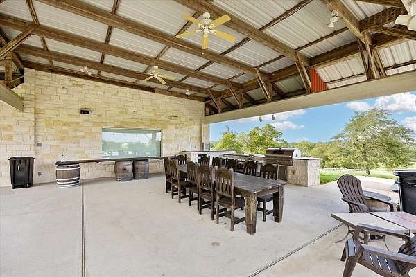 Set atop the rolling hills of Austin County, this refined ?430-acre ranch offers breathtaking panoramic views and a striking blend of luxury and land. Rolling pasture, native grasses, mature wooded areas, and abundant wildlife create a scenic, private setting. The ranch is enhanced by multiple ponds, Mill Creek frontage, five water wells, and barns. Anchoring the property is an impressive ?8,000 sq. ft. residence with six bedrooms and six and a half baths. The open-concept plan flows from the chef?s kitchen to the living area with wet bar and through French doors to a covered outdoor kitchen ideal for entertaining. A private primary wing includes a spacious bedroom, spa-style bath, and office. Amenities include a pool and spa, expansive outdoor living areas, a three-car attached garage, detached four-bay garage, and a versatile entertainment facility. Sidewalks connect the estate?s improvements. A historic home provides accommodations for guests or ranch staff. Austin County luxury!