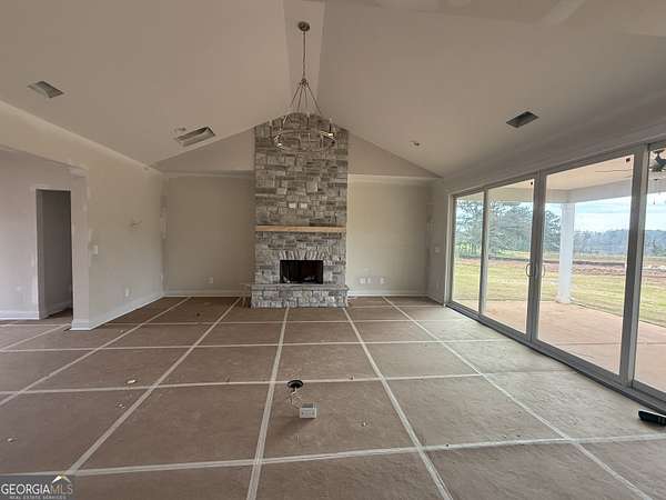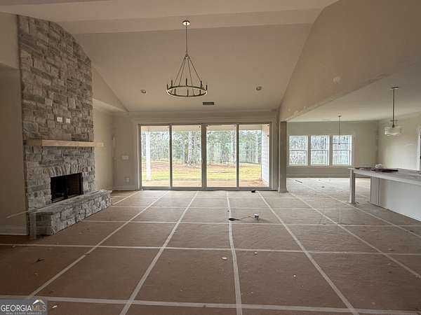 WOW! 6.36-Acre Lake Lot - New Plan! "The Bradbury" | 3,829 Sq Ft | 5 Bedrooms | 4 Full Baths This is the one you have been waiting for! Set on a breathtaking 6.36-acre lake lot, The Bradbury is a stunning new construction plan designed for space, light, and livability. If you love abundant windows and natural light, this expansive home delivers at every turn. A striking quad-door entry opens into the foyer and flows seamlessly into an open-concept layout featuring a large great room with vaulted ceiling and a wood-burning fireplace. Quad sliding doors lead to the covered rear porch, creating effortless indoor-outdoor living. The gourmet kitchen is a true centerpiece, offering stainless steel appliances, quartz countertops, glass pendant lighting, a spacious 10-foot island, and a walk-in pantry. The dining area provides direct access to the grilling patio, making it ideal for entertaining. The first-floor primary suite is a private retreat, highlighted by a coffered ceiling and a luxurious bath with a freestanding soaking tub and a separate tiled shower. For added convenience, the primary suite offers direct access to the laundry room. Also located on the main level are a guest bedroom, a full bath, and a private office. Upstairs, beautiful loft spaces filled with natural light overlook the living areas below. Three additional bedrooms and two full bathrooms complete the upper level, including one bedroom with a private en-suite bath. Additional features include cement board siding, architectural shingles, Low-E windows, spray foam attic insulation, and an attached two-car garage. Smart home features include a keyless deadbolt, select smart switches, a video doorbell, and more. A rare opportunity to own a thoughtfully designed home on an exceptional lake lot-schedule your private showing or inquire about pre-sale opportunities today.