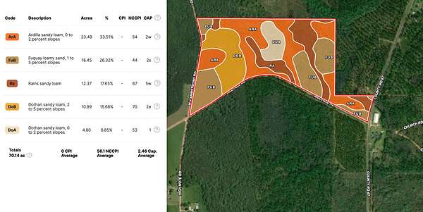 73acres of wooded land located 6 miles S of Hartford, Alabama, near Sardis Church. Lots of options with this tract - great hunting and has potential for a nice secluded homesite. Approx 14 acres of planted pine trees and the rest in natural growth hardwood. The pine trees are located on the corner of Millville and WV Armstrong and would make a great home site. Approx 450ft of frontage on paved Co Rd 67, approx 3400ft of frontage on Millville Rd (dirt road) and approx 1600ft of frontage on WV Armstrong Rd (dirt road).Located on the intersection of Co Rd 67 and Millville Rd - also at the intersection of Millville and WV Armstrong Rd. Located across the road from Sardis Church and approx 2 miles from the Alabama-Florida stateline.