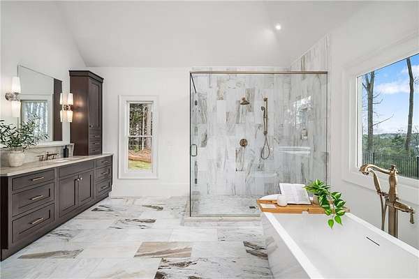 Set behind the iconic white fence line of Tullamore, in the heart of Milton's coveted horse country, this 2.62-acre private estate on Thorntree offers a rare blend of refined luxury, pastoral beauty, and peaceful seclusion. Surrounded by stunning horse farms, mature hardwoods, and perched gently atop a hill, the setting is breathtakingly serene-where nature, privacy, and wide-open space exist in perfect harmony. Though it feels worlds away, you're just minutes from the conveniences of Alpharetta, Downtown Alpharetta, Avalon, and Crabapple. Located within the charming Tullamore equestrian community, residents enjoy a unique blend of privacy and lifestyle amenities rarely found in Milton. The neighborhood features tennis and pickleball courts, as well as a community horse trail system that winds throughout the neighborhood-including directly through this property-connecting riders to the surrounding farms and trails for an authentic Milton equestrian experience. Perfectly suited for downsizers, empty nesters, or anyone seeking a luxury hobby-farm lifestyle, this true ranch-style home offers effortless single-level living on a picturesque 2.62 acres. The property provides ample space for animals and outdoor enjoyment, with a refreshed barn and open pasture areas ideal for horses, donkeys, chickens, or simply embracing the peaceful country setting. The home itself has been completely reimagined and renovated to feel like brand-new construction, offering 3 bedrooms, 2 full baths, and a powder room across approximately 2,252 square feet of beautifully finished living space. Nearly every element has been thoughtfully updated-from the new architectural roof, Hardie siding with cedar shake accents, windows, doors, and mechanical systems to the stunning white oak hardwood floors, designer lighting, and custom trim package throughout. At the heart of the home is a beautifully designed chef's kitchen featuring a Viking 36-inch gas range, Bosch appliances, custom inset cabinetry, a dramatic waterfall-edge island, and elegant marble countertops. The luxurious primary suite offers a spa-inspired bath finished with Taj Mahal quartzite, marble tile, and designer plumbing fixtures. Outdoor living is equally impressive. A brand-new PebbleTec pool with spa and sun shelf is surrounded by cream marble decking and a stunning covered patio designed for relaxing and entertaining while overlooking the peaceful property. Gas lanterns, extensive landscaping, irrigation, and a new driveway with additional parking complete the polished exterior. A dedicated pool bath and a walking path from the driveway to the pool make the space as functional as it is beautiful. Despite its tranquil farm setting, the home remains incredibly convenient-located within the highly regarded Milton High School district and just minutes from Publix, Scottsdale Farms, and 7 Acre Bar & Grill, with quick access to Georgia 400. Charming, turnkey, and incredibly special, this boutique estate offers the rare opportunity to own a fully renovated ranch on acreage within one of Milton's most picturesque equestrian communities. Whether you're looking to simplify life, enjoy a peaceful farm lifestyle, or create unforgettable memories with family and grandchildren, this property is truly one of a kind. Welcome home!