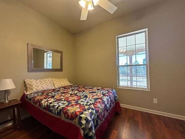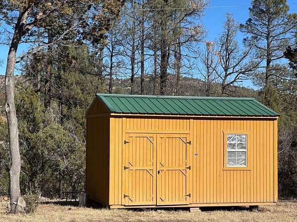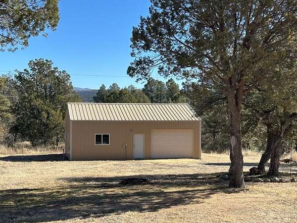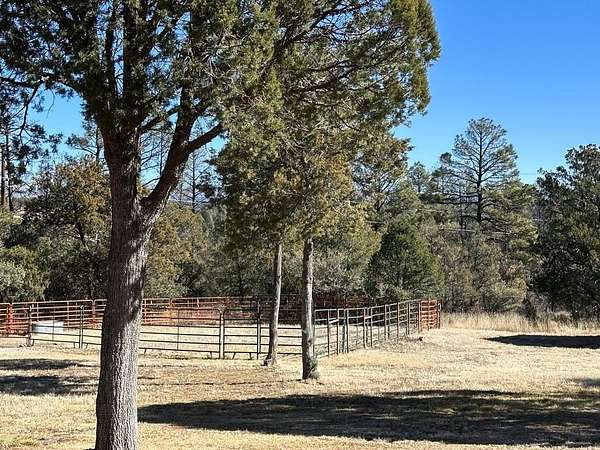 Custom-built home bordering public land, with exceptional privacy & forested trails just beyond the back door. Full-length covered porches seamlessly connect indoor living with the surrounding natural setting. Spacious eat-in kitchen features granite countertops, custom cabinetry, & newer appliances. The living room offers vaulted ceilings, built-in bookshelves, a wood stove, & east-facing windows with peaceful forest views. A split floor plan provides privacy, with a generously sized primary suite. The en-suite bath includes dual vanities, a tiled shower, soaking tub, linen storage, & walk-in closet. Additional bedrooms, one with French doors to the porch, share a well-appointed bath. A 27' x 36' insulated metal shop w/ concrete floors, skylights, wood stove, 220V power, and roll-up door doubles as a garage. Set on flat, usable 2.6 acres with circular drive, full fencing, portable corral, & five frost-free hydrants. Unrestricted, near Lake Roberts, the Gila National Forest, & town.