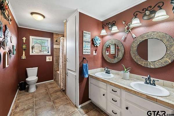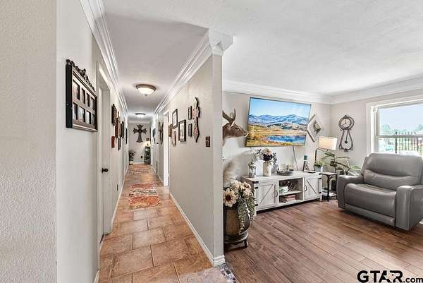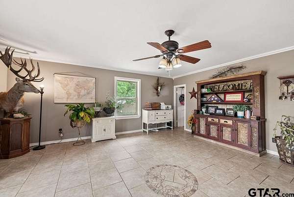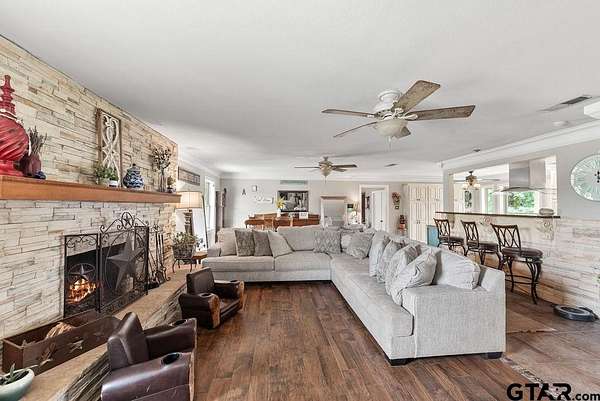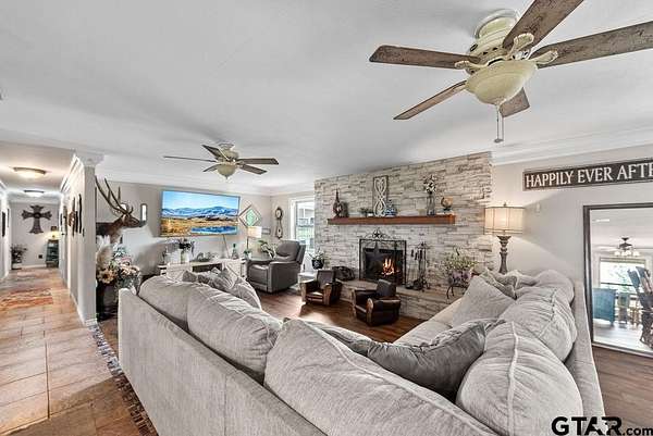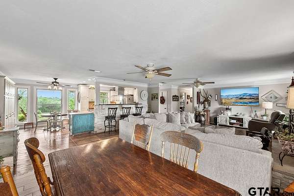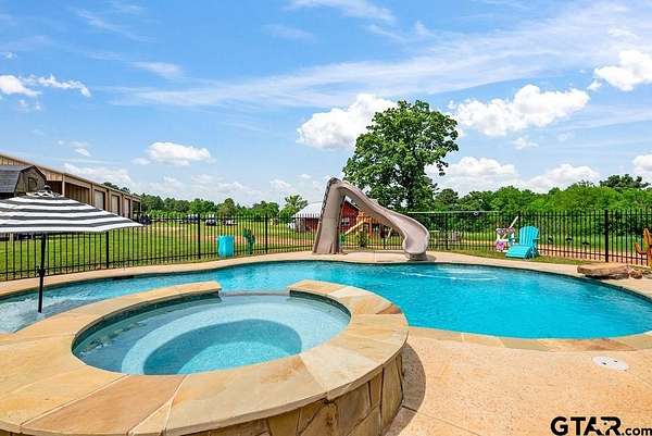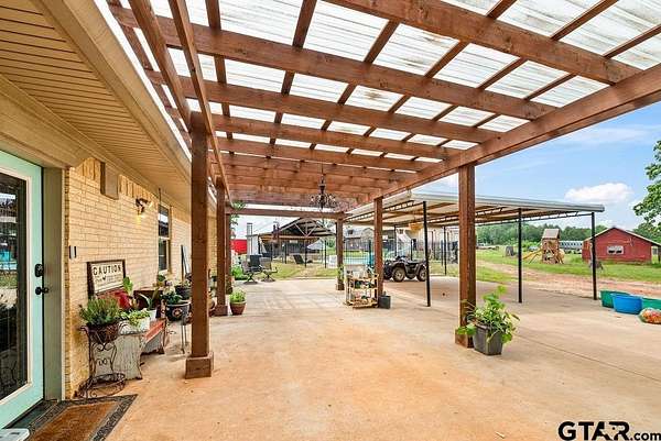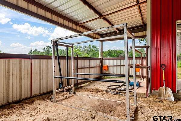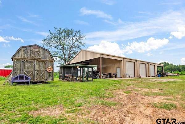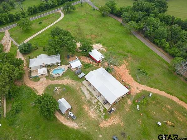 17.26 ac total for $850K!!! East Texas hills, wrapped by two road frontages providing easy entry and exit. Approximately 440' on FM 49, and 900' on CR 2650, a no outlet county road. Discover the joy of country life, whether it's farming, ranching, or simply retreating from the bustle of city life, while still being within reach of small town amenities. Step inside to a warm living space featuring a stone fireplace, generous natural light, & abundant charm. Enjoy the delight of distinctive details in this home, with 4 restful bedrooms, 2 full baths, & a half-bath with a tanning-bed to remain with the property. The well-appointed-kitchen seamlessly blends functionality and style with the living room & dining room. Thus, making this area the heartbeat of the home. There's also the great-room, considered a massive second living room or flex space. The exterior reveals a lush, green landscape, fenced with sturdy pipe fencing providing excellent security while preserving the view. Indulge in endless summer fun in the backyard with the sparkling pool with a slide. The first stages of new construction for the 30x30 slab, outdoor-kitchen, bathroom, and greenhouse, gives you the opportunity to select the final touches. Huge carport area with a pergola on one side and covered parking on the other. Multiple outbuildings, including a slab that is 70x100, of which 40x60 is a shop with 2 - 20x40 wings off each end, and a 20x100 shed across the back, a full bath on the inside, an area to close in for an office, above can be finished out into a loft, a ginormous fan at the ceiling of the shop, 4 roll up doors, and 2 entry/exit doors. Additionally, a 30x50 calf barn equipped 6 stalls, a large area in the front, each with gates, working fans, multiple lights, a storage room in the back & a full wash station, all serving as an incredible resource for various pursuits. Cannot forget forget the cute chicken coop & two additional storage sheds.