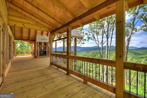 BRAND NEW QUALITY CONSTRUCTION in BEAUTIFUL "MOUNTAIN HIGH" (Gated & Paved Community). BEST LONG RANGE MULTI-LAYERED MOUNTAIN VIEW on the Market.... Sweeping from North Carolina, Georgia & into Tennessee. 4-BDRM Rustic Ranch w/ONE LEVEL Easy Living. Great Rm & Dining Rm separated by a TWO-SIDED ROCK Fireplace. Dormer Windows light up the Well-Appointed Kitchen & Dining Area. GREAT RM GLASS WALL to a Huge OPEN GABLE Party Porch w/Exterior Fireplace with Sweeping Views in all Directions. Huge Custom Kitchen w/Counter Bar overlooking Dining Room Area w/Fireplace. Main Level MASTER Suite w/Double Vanity & Big Tile Shower, Walk In Closet (direct access to Porch from Master). Full Laundry Rm (Laundry Sink/Granite) & Guest Half Bath finish out Main Level. Finished Terrace Level w/Wet Bar, Bonus Family Rm w/Fireplace, THREE Guest Rooms & TWO full baths (Another Master Suite on Terrace Level). Granite Countertops, Ceramic Tile Showers, Custom Cabinets, Wrought Iron Pickets & Oil Rubbed Bronze Custom Light Fixtures. Lots of Fixed Glass Windows, Attractive Wood Textures & Impressive Contrasting Stain Color Combinations (Wainscoting, Accent Walls & Trim). Zoned HVAC. Exterior Staircase connects the Main Level wrap around porch to Terrace Level Porch. Wired for Hot Tub. Vacation Rentals OK. Perfect for Full or Part Time Living & FANTASTIC Vacation Rental Potential. Very Supportive High End Neighborhood. Builder's One Year Warranty. Under Construction, Mechanicals going in now.