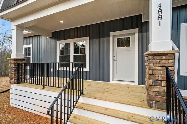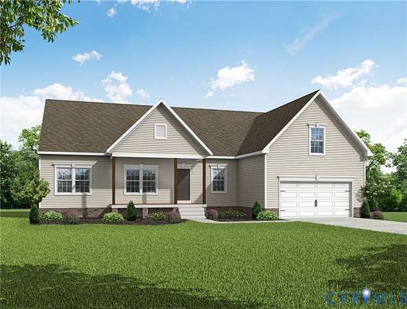 THIS IS A QUICKER MOVE HOME. THERE IS STILL TIME TO CHOOSE YOUR DESIGN. Expected delivery this fall. Contact Sales Agent for more details This Mallory floor plan is a charming and versatile 1826 sqft home with a welcoming covered front porch (18'6"X6') and a 1.54 acre lot. As you step inside, the home opens up to an expansive living area with vaulted ceilings. The family room, dinette, and kitchen flow together seamlessly. The kitchen is both functional and stylish, offering Stainless Steel appliances, ample counter space including an island, and a pantry for your storage needs. Adjacent to the kitchen, the dinette features sliding glass doors leading to the 12 X 12 rear deck. Near the family room, you'll find a hall that leads to the second and third bedrooms, both spacious and inviting and separated by a full bathroom. On the opposite side of the home, the primary suite offers a private retreat with a generously sized bedroom with a tray ceiling and large walk-in closet. The ensuite bathroom includes a walk-in shower, dual vanity, and private water closet. The suite also features a large walk-in closet providing plenty of storage space. Conveniently located near the primary suite, the laundry room doubles as a mudroom. This area also provides access to the 2-car garage. The Mallory is a home that blends comfort, style, and versatility, offering everything you need for today's modern living. With its spacious, open layout, first floor living, customizable options, and thoughtful design, it's the perfect space for anyone. The home is to be built in Compass Cove, where luxury living meets water access to the beauty of Lake Anna. Whether this is your forever home or an investment opportunity, Compass Cove is an exciting new neighborhood for both. Photos used for advertising purposes and not of the actual house and may include upgrades not part of the advertised price.