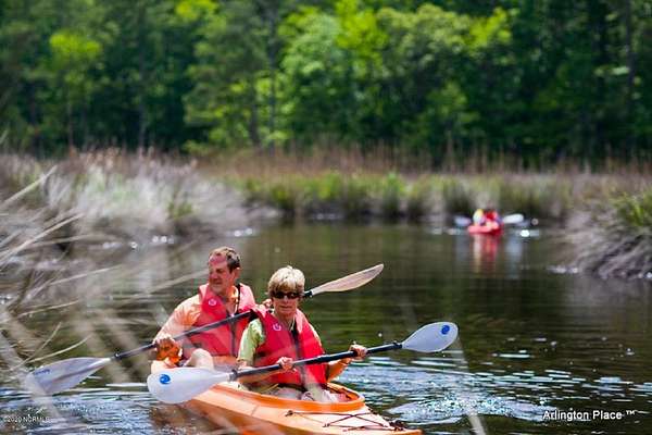 19+ feet above sea level means no flooding or flood insurance and possibly more important, peace of mind! Just off of the main road, Mill Creek Dr. Easy walk to the pool, clubhouse, trails, sports courts if you swing a left, or hang a right and it's just a short stroll to the Outfitter's Center, dock and Mill Creek. Arlington Place is a private riverfront neighborhood that is full of amenities for residents who enjoy an outdoor lifestyle....or just relaxing on the porch works too! In addition to the pool/clubhouse area, amenities already built include: kayak center, boardwalks, parks, beach, boat ramp, gazebo, fire pits and docks on Mill Creek. Low homeowners insurance, low dues, pre-paid water tap, no mandatory flood ins.