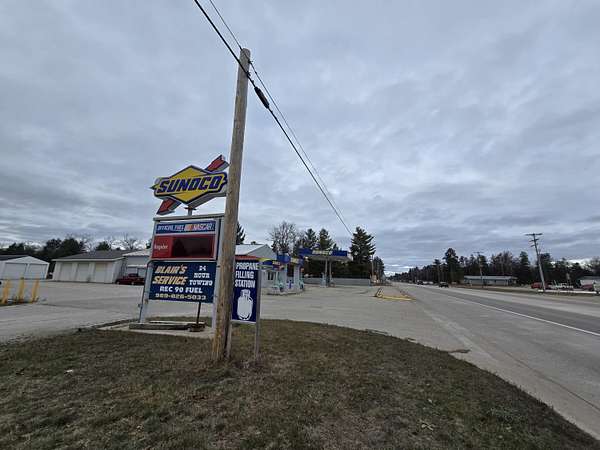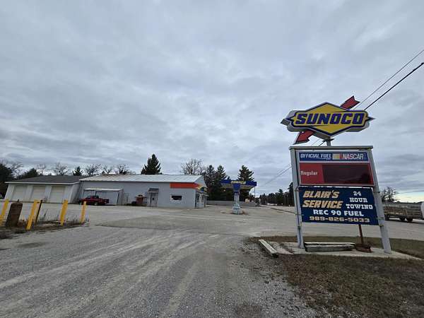 Just under 3 acre, 6000+/- SQ FT., multi-generational, full-service auto repair facility with five bays, equipped with six Ben Pearson lifts and an additional tire alignment lift bay, including tire machines and a balancer(s). Wrecker service includes a 2016 Hino flatbed and a 2010 F-450. Gas service features eight modern fuel pumps supplied by a 20,000-gallon underground storage tank with a Veeder-Root monitoring system. A recreational fuel pump is also available from a 500-gallon above-ground tank. This property is in a high-traffic location on State Highway M-33/M-72 north of Mio directly across from the airport.. An off-site state highway billboard permit is included in the sale along with any remaining inventory.*All information herein is deemed accurate but is not warranted.*