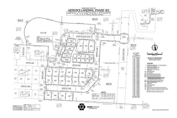 SUBDIVISION PLAT OF HERON'S LANDING, PHASE W2 A SUBDIVISION OF THE CITY OF MISSOULA, COUNTY OF MISSOULA, MONTANA LOCATED IN THE SE 1/4 OF SECTION 12 AND THE N 1/2 OF SECTION 13, T.13 N., R.20 W., PRINCIPAL MERIDIAN, MONTANA - (LEGAL DESCRIPTION WILL CHANGE UPON FINAL PLAT APPROVAL AND RECORDING)