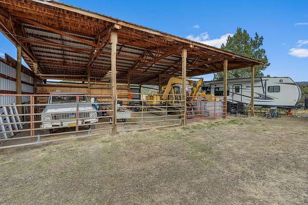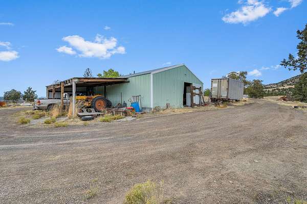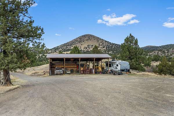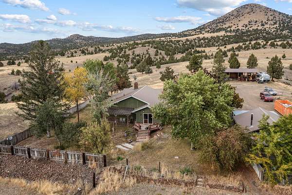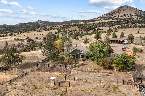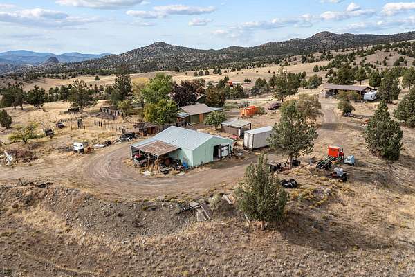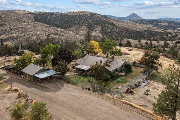Rare opportunity to own 82+ acres in Mitchell, Oregon! This versatile property includes 35 acres of water rights, is fully fenced and cross fenced, and spans 3 separate tax parcels. You'll find a rustic but functional barn, multiple shops, machine sheds, and hay storage- everything you'll need for livestock, farming, or equipment. The main home sits proudly on a hilltop, offering sweeping panoramic views from every window. Inside, you'll find 3 bedrooms, 2 bathrooms, a large open floorplan, multiple bonus rooms, and 3 heating/cooling sources: woodstove, oil monitor, and full HVAC with A/C. Bonus: a second home on the property with its own well, meter, and septic- ideal for multi-generational living, guest quarters, or rental income. Just minutes from downtown Mitchell and the Painted Hills, this property is perfect for those seeking wide open space, privacy and potential.
