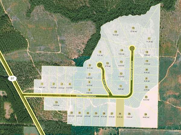 From Pensacola, take US-29 North toward Cantonment/Molino. Travel approximately 10 miles, then turn left onto State Road 97. Continue about 2 miles and the gated entrance to Bluewater Creek Estates will be on the right.