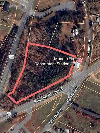 Est $481/moPrivate 2.25 Acre lot located right off of Rt 24/ Stewartsville Rd and Rt 122/ Moneta Rd in Bedford county. Conveniently located between SML, Roanoke, Lynchburg and Bedford makes the lot perfect for anyone looking for that centered sweet spot. This lot offers many build opportunity options for buyers with its AV zoning classification. Take the quick drive from any direction and walk the property to see what all it has to offer!