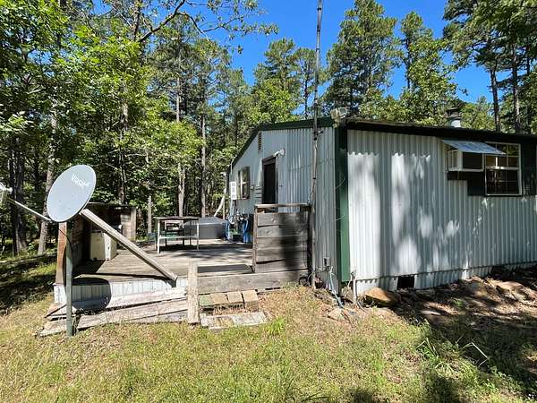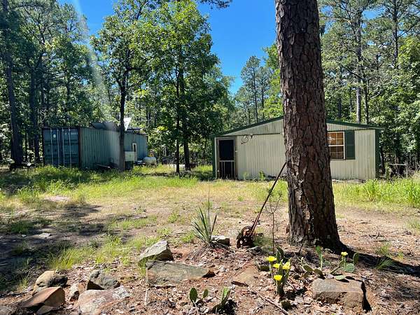Come escape to the woods where you will find a cabin on 5 acres tucked away, up on Horsehead mountain. The cabin has a solar system in place for power, a septic and a rain catchment for water. A tankless hot water heater provides a warm shower. The 250 gallon propane tank runs the refrigerator, cookstove and a wall furnace. There is also a woodstove for those chilly wintery nights. A deck comes off the back of the cabin with a covered picnic area that provides a place to entertain or relax outside. There is a steel container for storage of all the atvs and toys. This is the perfect place to use as a vacation getaway. The forest is open and easy to walk with a wet weather creek running through. The area is quiet and peaceful with tall mature oaks, pines, cedar and hickory. Come live off grid and enjoy the tranquility of these beautiful mountains. GPS 34.44177, -95.67019