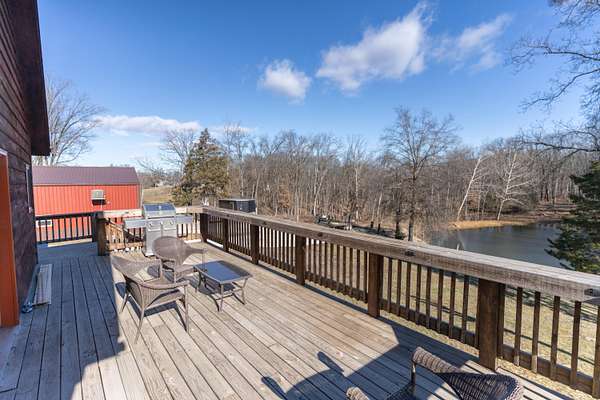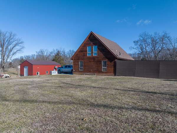 Nestled on 10 +/- peaceful acres near Mark Twain Lake, this one-of-a-kind property delivers the perfect blend of comfort, warmth, and a true connection to nature. The open-concept living, kitchen, and dining area features beautiful wood flooring, cedar trim, and a large kitchen island that's made for hosting, gathering, and making memories. French doors open to a spacious deck overlooking the fenced yard, offering the perfect spot for morning coffee, evening sunsets, or entertaining family and friends. The walk-out basement includes a non-conforming bedroom, ideal for guests, a home office, or extra flex space. Enjoy modern upgrades like fiber optic internet and ADT security for added peace of mind. The standout feature is the impressive shop with HVAC, 12' doors, and plenty of room for hobbies, storage, or your next big project. Backing to Corps of Engineers land and located just 1.5 miles from the boat ramp, this is a rare lake-area retreat you'll love coming home to.