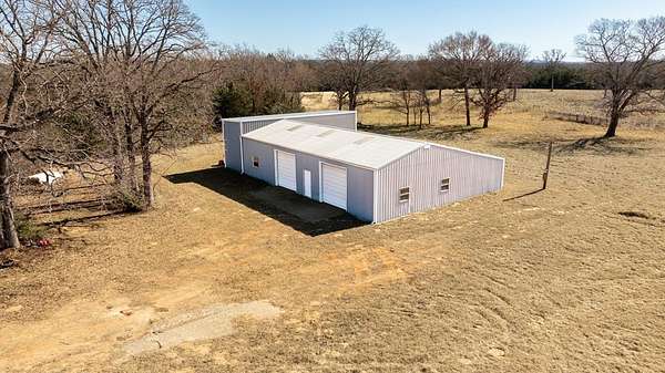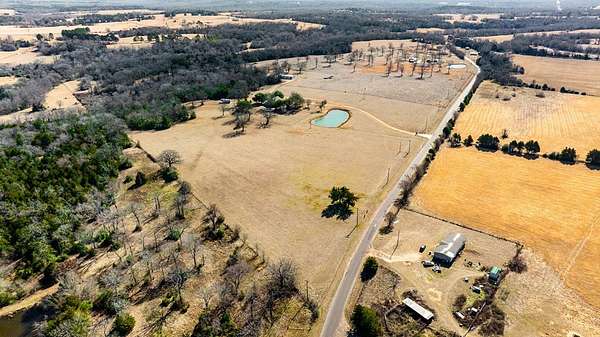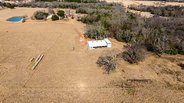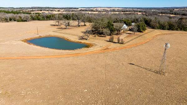 Beautiful Well maintained 4-bedroom, 2.5-bath home situated on 32+ acres of fenced and cross-fenced land. Primary suite located downstairs. Home features a gas-burning fireplace, community water with additional water well. Property includes a greenhouse and established rose garden with a peach tree. Excellent agricultural and equestrian setup with a hay field, two stock ponds, and approximately wooded acreage perfect for hunting, with the remainder open and usable. Shop with three stalls, including an RV stall, plus open horse stalls on the backside of the workshop. Additional RV parking with electric hookup located behind the home. Property is accessed through an iron gated entrance with electric fencing. Ideal for livestock, horses, or those seeking a private rural retreat with functional improvements. Don't miss your chance to own a piece of the Texas dream!