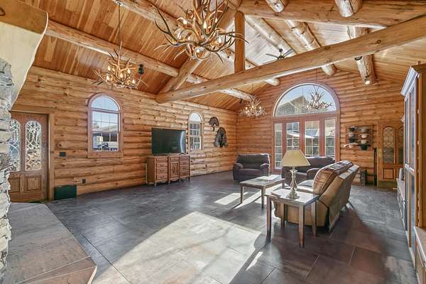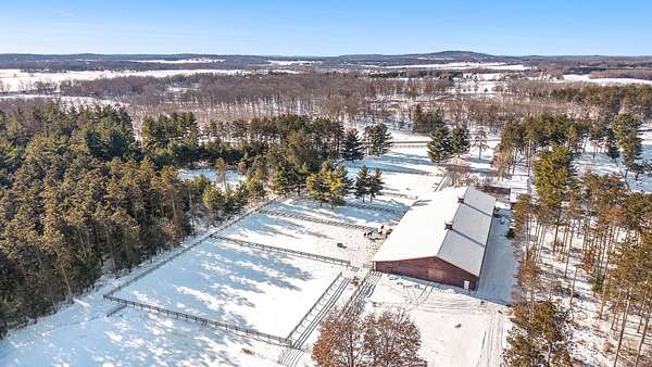 Looking for a country home that is out of the ordinary? So many stunning features in this log home nestled on a 20 acres horse farm! Three bedrooms, two of them with en-suites, the primary suite has a soaking tub, walk in shower and fireplace. You will enjoy the upscale 6 burner Viking gas stove and the double ovens in the kitchen with lots of cabinet space. Two different basement spaces, offering plenty of storage, a fruit/wine, billiard room, and craft room/workshop. The horse barn features 16 heated stalls, 6 non-heated stalls, 130' x 60' indoor arena, tack room, wash rack, and a locker area for boarders. Outside you have a lean to with access to runs, multiple paddocks, outdoor arena, and hay storage area. Additionally there is a 1 bedroom apartment, perfect for an onsite trainer or an