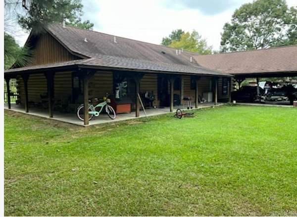 Nestled just outside the city limits of Monticello, Arkansas, this stunning custom-built log home offers the perfect blend of rustic charm and modern comfort. Situated on 9.14 acres, the property provides ample space and privacy while remaining conveniently close to town. This 1,920 sqft home features 3 spacious bedrooms and 2 full bathrooms. The open concept kitchen and living area serve as the heart of the home, ideal for family meals, celebrations, and cozy nights in. The expansive wraparound porch offers scenic views, perfect for morning coffee or weekend gatherings with friends and family.A mancave is attached to the carport, providing the ideal space for relaxation or hobbies (or a "she-shed" for those looking for a retreat). The property is easily accessible from a paved county road, with a gravel drive leading to a large 24x30 red iron metal shop and a covered carport, making it perfect for storage or workshop needs.The land itself features about 2.5 acres of timber, offering the perfect balance of nature and functionality. Don't miss the opportunity to own this beautiful home and land in a prime location! Schedule a showing today!