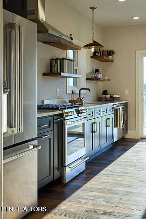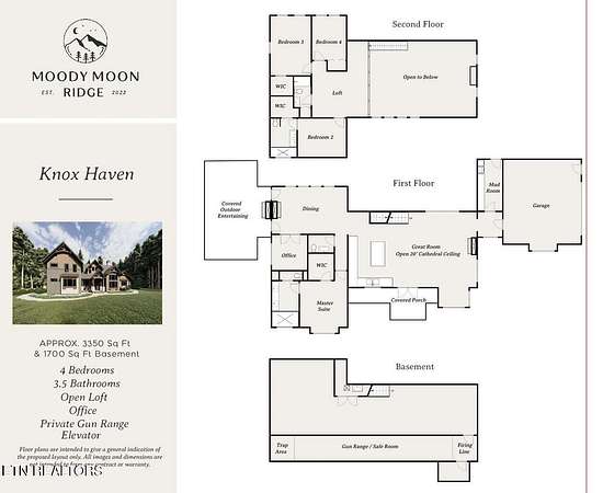 Bold architecture, sweeping mountain views, and thoughtful craftsmanship come together in The Knox Haven, a striking mountain estate designed for elevated living on English Mountain. With 5,050 square feet of total space, including a spacious walkout basement, this four-bedroom, three-and-a-half-bath residence blends modern luxury with the rugged beauty of the Smokies. The heart of the home is a beautifully designed chef's kitchen, anchored by an oversized island and appointed with quartz countertops, GE Cafe appliances, and custom solid wood cabinetry. Ideal for both entertaining and everyday living, the kitchen flows effortlessly into the expansive great room where vaulted ceilings, a dramatic wall of windows, and panoramic mountain views create an unforgettable gathering space filled with natural light. The main-level primary suite provides a peaceful retreat, complete with a spa-inspired bath featuring curated designer fixtures, a freestanding soaking tub, and a fully tiled walk-in shower. Throughout the home, wide-plank solid hickory flooring, custom trim work, and designer lighting add warmth and timeless character. Outdoor living is designed to be just as impressive as the interior. A covered mountain porch and gourmet outdoor kitchen provide the perfect setting for entertaining, relaxing evenings by the fire, or quiet mornings surrounded by nature. The walkout basement offers 1,700 square feet of additional space, providing flexibility for recreation, storage, or future expansion. Optional upgrades include a private residential gun range and a residential elevator, offering both convenience and a unique level of customization rarely found in mountain homes. Every home at Moody Moon Ridge sits on a private 5+ acre homesite, creating an extraordinary sense of space and connection to the surrounding landscape. Planned community amenities include an open-air pool, fitness studio, organic garden, and farm-to-table gathering spaces, thoughtfully designed to celebrate the slower pace of mountain life. Ideally located between Knoxville, Gatlinburg, and Asheville, Moody Moon Ridge provides convenient access to the very best of the Smoky Mountains -- from the trails of the Great Smoky Mountains National Park to Douglas Lake, boutique shopping, local distilleries, and exceptional dining. Whether envisioned as a full-time residence, generational mountain retreat, or luxury short-term rental, The Knox Haven represents the perfect blend of bold design, modern comfort, and breathtaking Smoky Mountain beauty. Choose from six thoughtfully designed model homes and build on the homesite of your choice, with the flexibility to personalize finishes and create a truly custom mountain residence.