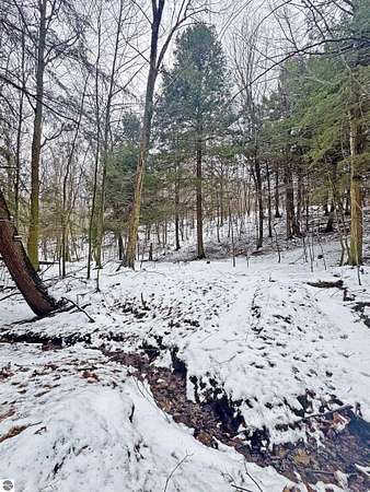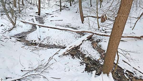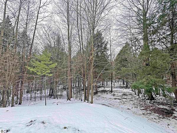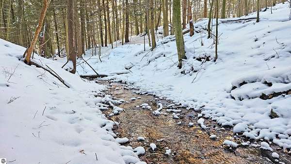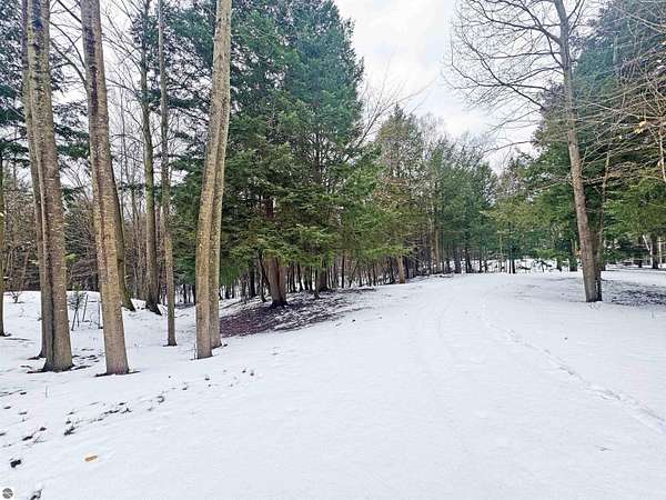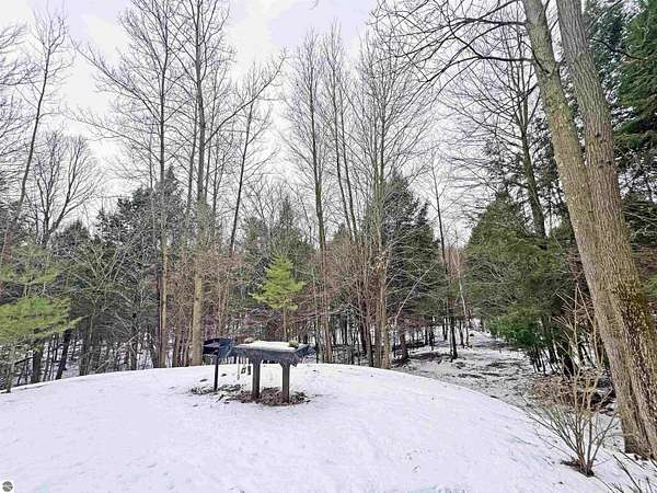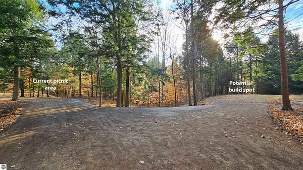 Nearly 6 wooded acres in Portage Ridge offering exceptional privacy and extensive site improvements. The property encompasses the south half of a cul-de-sac and is heavily wooded with a mature forest, creating a quiet, secluded setting where neighboring homes are not visible. Significant development has already been completed, including tree work and stump removal, a substantial gravel driveway, and a bridged ravine with a 2-foot culvert and boulder retaining wall. The driveway leads to a cleared and leveled build site ready for construction, while reopened logging trails loop throughout the property, providing access around the entire acreage. Near the entrance, a cleared and leveled campsite includes a camp grill and cook station, allowing for immediate recreational use. A spring-fed creek flows along the east side of the property, adding to the natural appeal. Underground electric, natural gas, and cable/internet are available. Association services include snow plowing, road maintenance, and grass cutting along road shoulders and the cul-de-sac. Ownership also includes access to a community pool and playground. Despite the private, wooded setting, the property is only a bike ride to Portage Lake or Lake Michigan. Arcadia Bluffs Golf, Little River Casino, Frankfort, and the Dunes only a short drive away. A unique opportunity to enjoy a peaceful northern Michigan setting with much of the groundwork already in place. For complete HOA information and documents please visit http://www.portageridge.info.