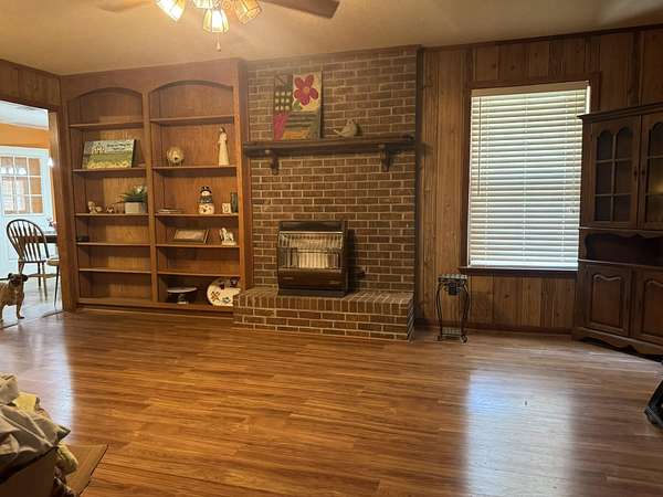 - Ceiling Fan(s), Fireplace, Storage Room, Window Treatments