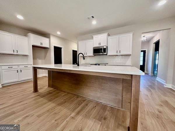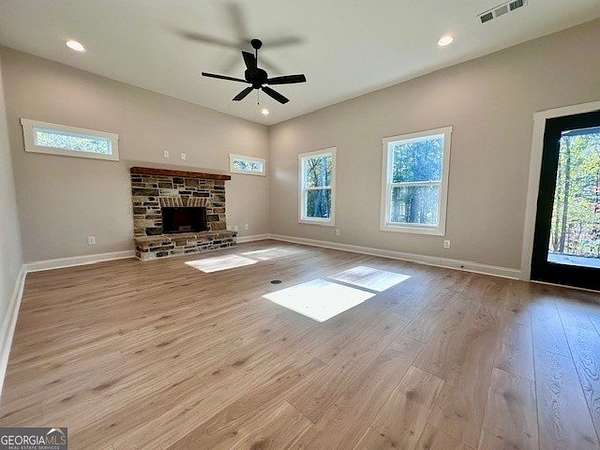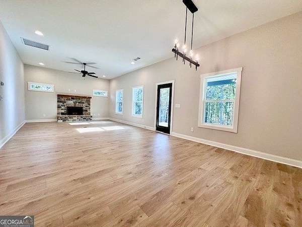 OPEN HOUSE Sunday, DEC 28th 12:00-2:00 ONE LEVEL STEP-LESS RANCH IN SOUGHT AFTER MORELAND ELEMENTARY SCHOOL ZONE! The DAVENPORT Plan features entry foyer opening to a Dining Room with trim accent detail. The spacious Family Room offers wood-burning fireplace, 10' ceilings, and canned lighting! This plan offers an open flow from Family Room/Kitchen/Breakfast area. The Kitchen boast tasteful cabinets, quartz or granite counters, tile backsplash, stainless appliances to include backless range/oven, micro-hood, & dishwasher, and walk-in pantry. The island is a great place for serving or entertaining! On the main level, you'll find a nicely sized Owner's Suite with sitting area. The Owner's Bathroom features tiled shower, garden tub with tile surround, double vanity, and a walk-in closet. Additionally, on the main level you'll find a three guest bedrooms and shared bathroom featuring granite or quartz counters and tiled flooring. Each guest room is pre-wired and braced for a ceiling fan. This beautiful home features a FOAM INSULATED ATTIC, total electric construction, and architectural shingled roof. If you're looking for a gorgeous, serene setting...this is a winner! SMART HOME TECHNOLOGY PACKAGE included for convenience Up to $6,000 toward buyer's closing costs assistance available when using builder's preferred lender!