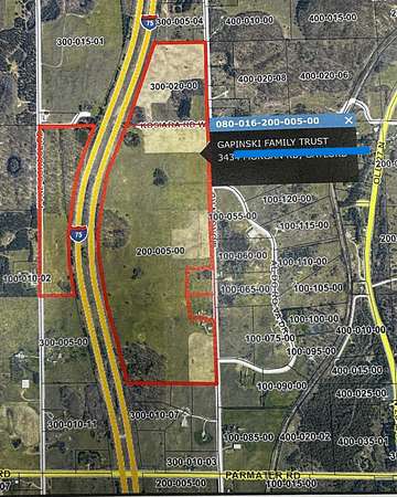 From M-32 in Gaylord, take N Ohio St. At Fairview Rd stop sign, N Ohio becomes Morgan Rd. Property will be on the left (west) side of the road begining about 1/4 mi past Parmeter & continuing for about 1 mile along road. To get to Property on other side of I-75, take Morgan Rd back to Parmeter Rd, turn right then turn right onto Pyke School Rd. Property on rightside starting approx 1/2 mile down