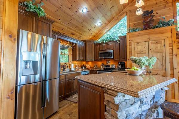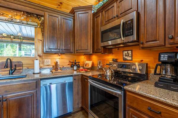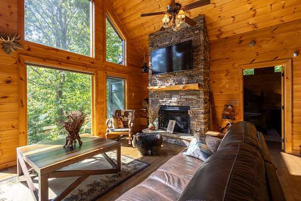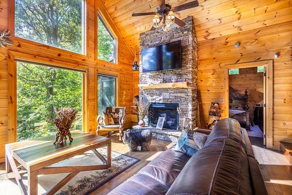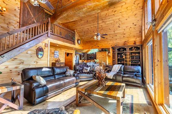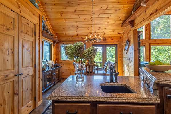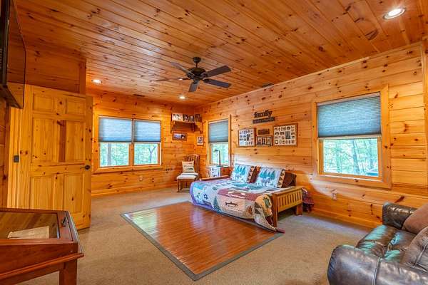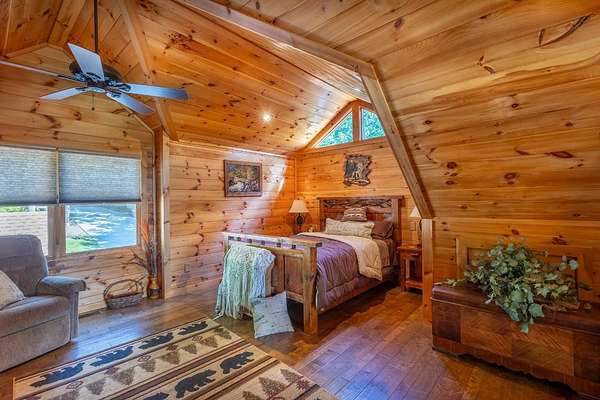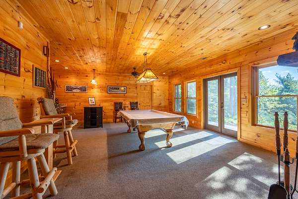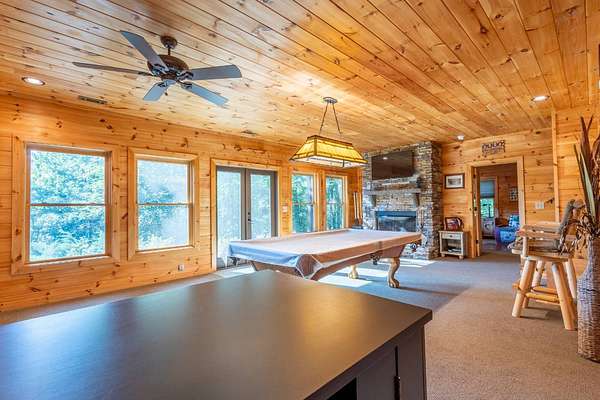 For sale by owner BROKERS WELCOME. "Mountain's Edge" off of the very desired area of the Blue Ridge Mountains & close to town. This 3BR / 3 1/2 bath / 3941 sq. ft. (heated) beautiful home completed in spring of 2016 has entertaining areas on every level. The award winning kitchen has top of the line appliances with quartz counter tops. Along with the kitchen the indoor living area offers stunning floor to ceiling stone fireplace and open dining area on the main floor. Master and laundry are also on main level. Enjoy the finished basement with pool and ping pong table, wet bar area, a separate hobby room, the 3rd bedroom w/full bath and a place for your ATV. Sit on your party porch that is heated and air conditioned with EZ-Breeze set up for year round enjoyment or go downstairs and hop in your top of the line lighted Jacuzzi hot tub. Then down a few more steps from that is your top of the line fire pit area. Enjoy the deer in your back yard and the view of 8 mountain ranges in the beautiful Blue Ridge Mountains. Outside you will also love the landscaped area (no lawn to mow!!) and the 2 car garage with additional parking area for your guests or a possible recreational vehicle. Paved street w/gate at entrance for security. There are only 5 quality homes in our group but with no association. Too many other features to mention with a lot with over 3 acres of tranquility for you to enjoy. This home is rare in Fannin County (less than 2 hours from downtown Atlanta) because you can use it as an Arbnb, a second home or a full time residence. Mostly furnished. Your piece of Heaven is tucked away in your own peaceful environment at Mountain's Edge.
