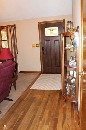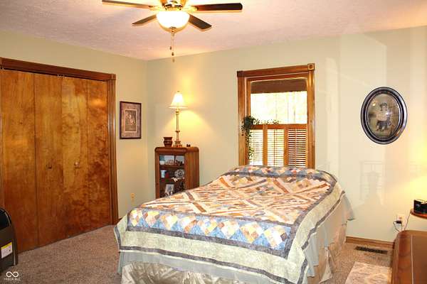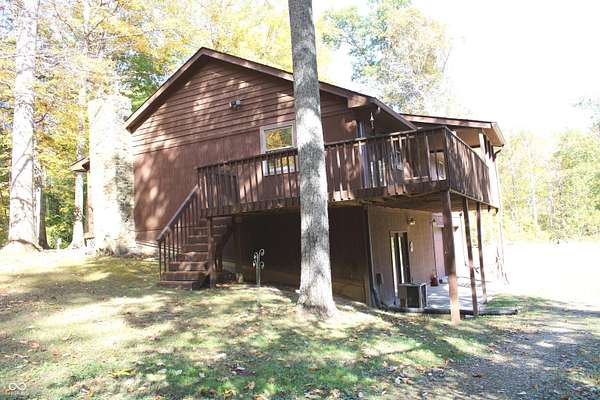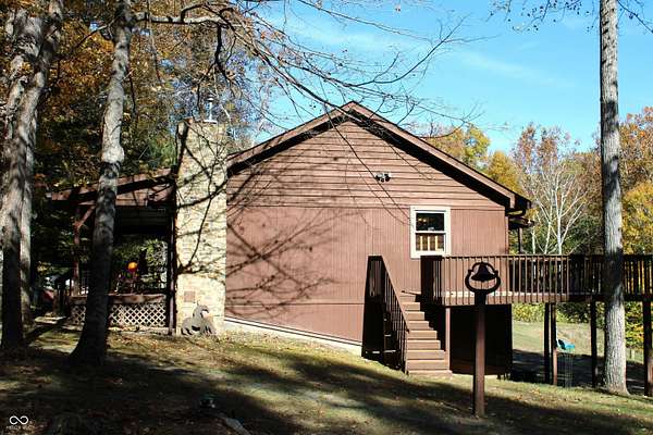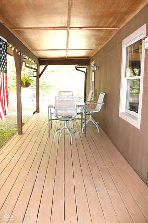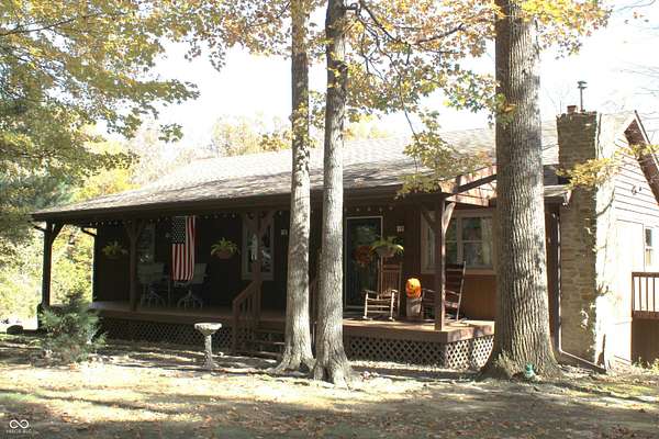 If you love and seek country living, then this is the one!! Secluded country ranch home sitting on a wooded ridge with walk out basement overlooking a nice sized stocked pond and woods - settled on 10 acres with all the amenities for quiet peaceful living. A small tributary creek of Indian Creek runs thru the back wooded acreage. You'll love the covered front porch, open deck out back and covered patio out back - lots of wonderful outdoor spaces to enjoy. 3 bedrooms and 2 baths on the main level along with a cozy great room, kitchen and dining area, plus the laundry. Two of the bedrooms have murals on walls for added charm. The Master Bedroom has two closets with nice deep storage and a master bath with double vanities and tub/shower. The nice size walk-out basement offers a large finished family room with brand new carpet. Perfect area for kids to play or a nice spot for entertaining and/or pool table. (Both the Great Room and Family Room have flue/vents to chimney available along with fire rated corner walls for installation of a wood/pellet stove, if wanted) Lot also includes a metal storage building that has an upper storage area with shelves and is approximately 20'x20' - could be used to house small farm animals. Seller is including a 30'x40' Steelmaster Building with heated floors that has not been erected, if the buyer wants it. The beautiful acreage is perfect for hunting, fishing, and hiking thru the woods - all just steps away from the back door of this home. Located in the highly sought after Indian Creek School Corporation and just outside of Morgantown, but still in Johnson County. Tankless water heater 2024, Roof 2013, Well Pump 2019, Newer Filtration on well. Opportunity is knocking again, don't wait to see this nature lover's paradise.
