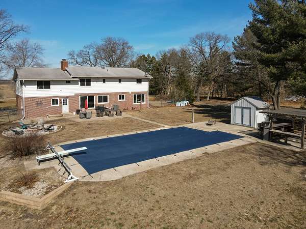 Experience the perfect blend of modern updates and peaceful country living with this spacious two story home set on 6 beautiful acres. Offering nearly 3200 square feet of living space plus an additional 1200 in the partially finished basement this home provides plenty of room to spread out, entertain, and enjoy the outdoors. The heart of this home is the newly updated modern kitchen, featuring stylish finishes, ample cabinetry, and generous counter space- perfect for everyday living or hosting family and friends. Multiple living areas across two floors create flexible space for relaxation, gatherings, or A home office. Step outside to your own private retreat where an in-ground pool invites summer fun and a place to relax. The expansive property also includes a large pole barn, ideal for storage, hobbies, equipment or workshop space. Surrounded by wide open countryside, this home offers rural living while still providing the space and amenities for everyone. With room to roam, entertain, and enjoy the outdoors, this one of a kind property is ready to welcome you home. Call an agent today!