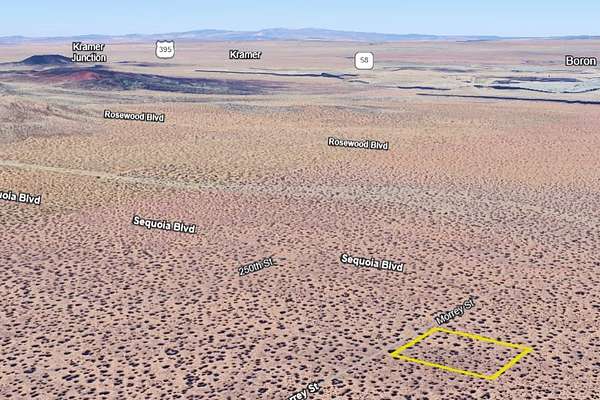 Est $398/moDiscover the perfect escape and smart investment on this 2.50-acre gem in Boron, Kern County, CA! Surrounded by peace and open skies, this spacious lot offers a quiet setting ideal for relaxation or your next off-grid adventure. Enjoy the freedom of alternative energy options like solar and easy dirt road access to your future retreat. With California City less than an hour away, serenity and opportunity come together beautifully.