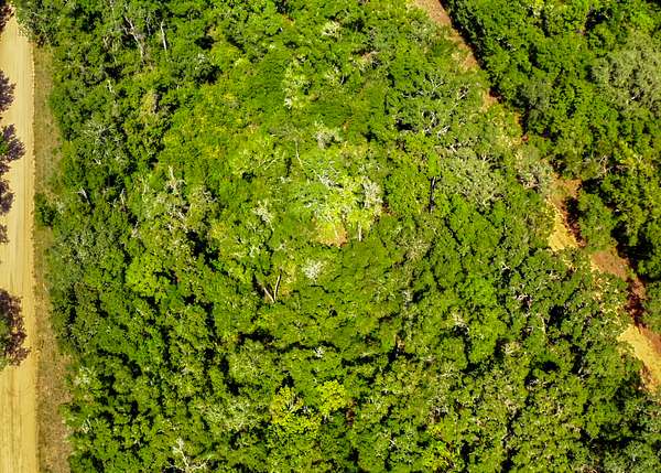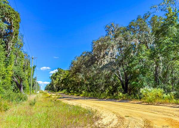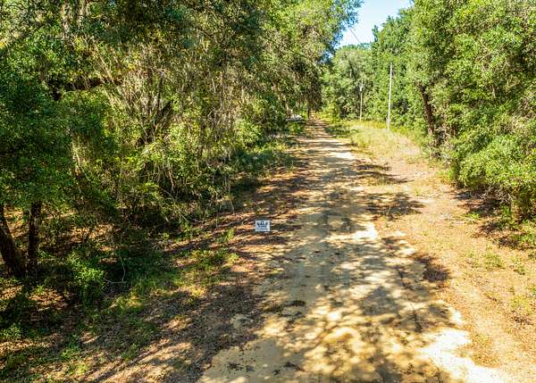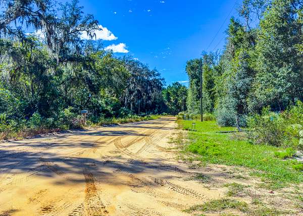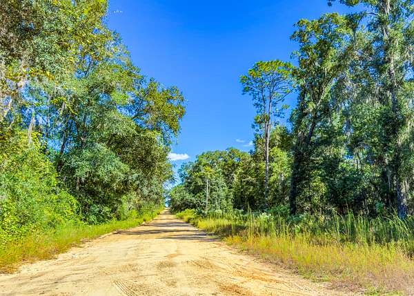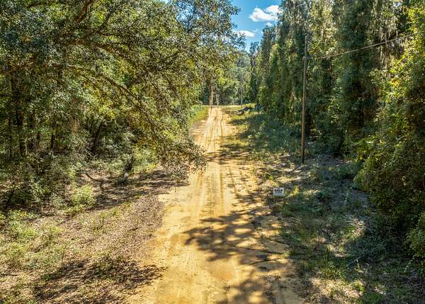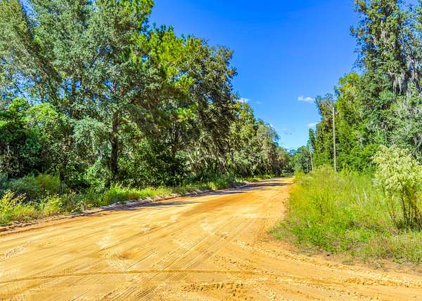 The property is accessed by a dirt road, providing direct frontage and simple entry to the lot.