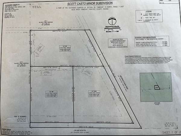 Lot Size: 3.116 net acres Zoning: Residential (minor subdivision approved) Utilities: Septic approved (soil tests complete), 8" tile installed with hookups School District: Eastern Hancock Schools Driveway Access: Off E 500 S (Lot 2). Contact Land Specialist Caleb Low for a showing 317-691-0462