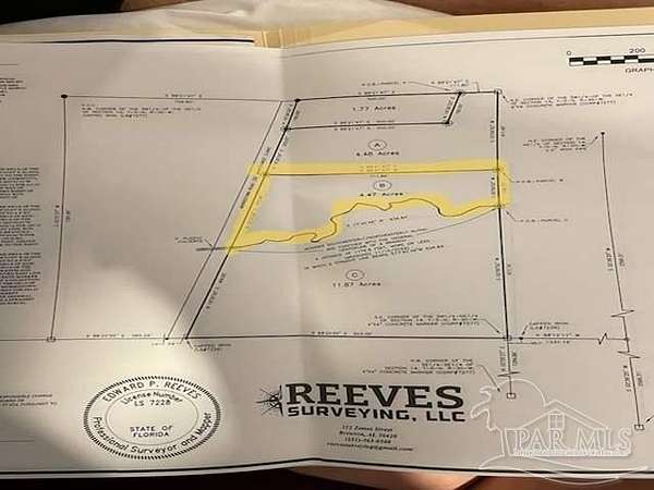 COMMENCE AT A CAPPED IRON (LB#7277), BEING THE NORTHWEST CORNER OF THE SW1/4 OF THE NE1/4 OF SECTION 14, T-5-N, R-30-W, SANTA ROSA COUNTY, FLORIDA; THENCE S 88 degrees 21'47" E ALONG THE NORTH LINE OF THE SW1/4 OF THE NE1/4 OF SAID SECTION 14 FOR 1321.60 FEET TO A 4"X4" CONCRETE MARKER (CORP#7277), BEING THE N.E. CORNER OF THE SW1/4 OF THE NE1/4 OF SAID SECTION 14; THENCE S02 degrees 56'52"W ALONG THE MONUMENTED EAST LINE OF THE SW1/4 OF THE NE1/4 OF SAID SECTION 14 FOR 411.45 FEET TO THE POINT OF BEGINNING; THENCE S02 degrees 56'52"W ALONG THE MONUMENTED EAST LINE OF THE SW1/4 OF THE NE1/4 OF SAID SECTION 14 FOR 199.75 FEET TO THE GENERAL CENTERLINE OF A BRANCH; THENCE DEPARTING SAID EAST LINE, RUN SOUTHWESTERLY ALONG AND TOGETHER WITH THE GENERAL CENTERLINE OF A BRANCH A DISTANCE OF 1179.6 FEET, MORE OR LESS, OF WHICH A STRAIGHT LINE BEARS (S77 degrees 40'46"W FOR 838.84 FEET) TO THE APPARENT EASTERN RIGHT OF WAY OF MORRISTOWN ROAD (5O'R/W); THENCE N16 degrees 30'26"E ALONG SAID APPARENT EASTERN RIGHT OF WAY FOR 415.96 FEET; THENCE DEPARTING SAID EASTERN RIGHT OF WAY, RUN S88 degrees 21'47"E FOR 711.89 FEET BACK TO THE POINT OF BEGINNING, SAID PARCEL CONTAINING 4.47 ACRES, MORE OR LESS.