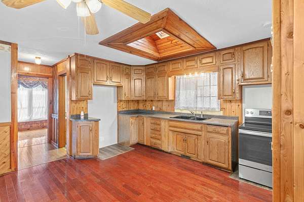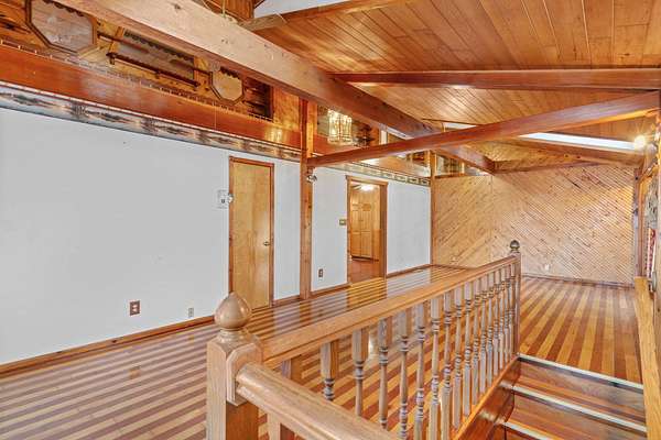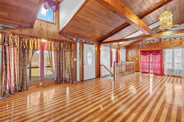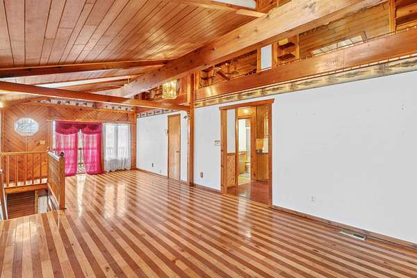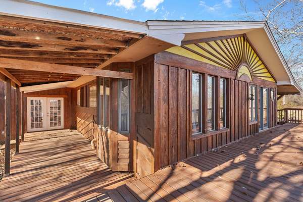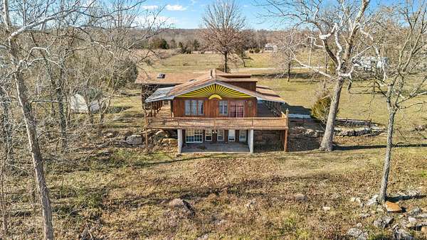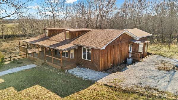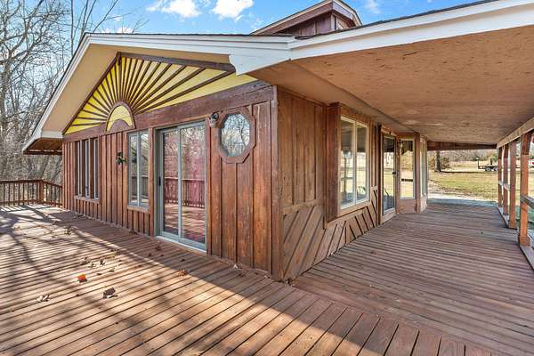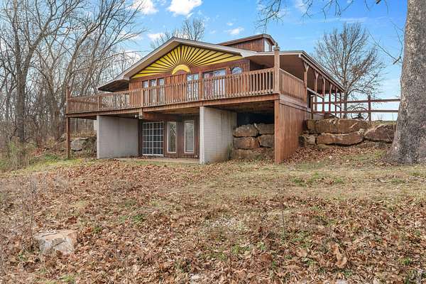 Welcome to 2,146 sqft of truly unique waterfront living, nestled on 7.35 acres along the Little Sac River. This one-of-a-kind property offers privacy, natural beauty, and a lifestyle that feels like a retreat.Enjoy breathtaking sunrises and sunsets from the wraparound deck spanning three sides of the home, surrounded by peaceful nature in every direction. Inside, you'll find soaring ceilings, beautiful California redwood trim, and hardwood floors that add warmth and character throughout.The walk-out basement with wet bar is ideal for entertaining or relaxing, while a 2-year-old roof provides peace of mind. With its rare waterfront setting, generous acreage, and distinctive design, this home offers an opportunity you don't see often.