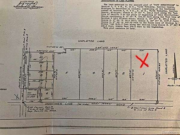 An excellent opportunity to build your dream home on 4.75 acres! Lot can accommodate a large home and as many outbuildings as one can imagine. Located just west of Lakeshore Rd and conveniently nearby the highly desirable Lake Huron. Beaches, shopping, dining, boat launches, and downtown Lexington local attractions are just a short commute away. Take a drive north into the thumb of Michigan and enjoy all the scenery the Lake Huron shoreline has to offer. Travel south into Fort Gratiot or Port Huron for all major amenities. Lots of wildlife, fishing, and hunting opportunities nearby. Great location for an outdoor enthusiast or adventurer! This property is zoned residential and features over 300 feet of frontage in a small platted subdivision. Purchasing party is responsible for determining utility access, well and septic costs & potential placement, and any other information deemed necessary. A hand perc test was done years ago and results were satisfactory, todays perc testing is more extensive and although sellers don't anticipate any issues, the buyer will need to have it completed for assurance. Natural gas and electricity are assumed to be available at the road based on there being nearby residential homes, but buyer is responsible for confirming. Sign on the property is believed to be near the center of the parcel but NOT guaranteed, the buyer must confirm through an independent survey. Property is located across from/north of 5808 and 5820 Mortimer Line Rd. There is a new construction home on the lot west of this property. This is a great opportunity! Drive by the property, schedule your tour of the grounds, and begin the journey of making your dream a reality with an incredible property not far off the beaten path. Welcome!