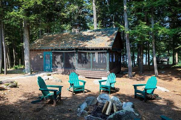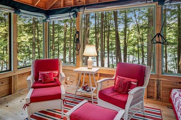 Privacy and tranquility on Squam Lake with 14.96+/- acres and 860' of pristine, deep-water frontage on Bean Cove. This incomparable family compound is protected by conservation land on the entire western boundary ensuring privacy in perpetuity. Designed with the ideals of a traditional old Squam camp, the property has 4 buildings that allow privacy to coexist with a sense of community and togetherness in the common gathering spaces. The Lodge is a year-round, 2-story home with 2,054 sf, 2 bedrooms, 1 bath, laundry, large first floor family room, kitchenette, and a wraparound porch with a hot tub. The Kitchen Cottage is the ultimate gathering space and is fully screened to enjoy the sights and sounds of the lake. The open floor plan allows for large dining and sitting areas with a full kitchen at one end. The Guest House has two bedrooms, two baths (one bedroom is en suite), a sitting room, laundry and with a full foundation under the 1,721 sf it can easily be a year-round home. The Sleeping Cottage is a seasonal one bedroom, one bath favorite with a beautiful, screened porch overlooking the lake that gives the effect of sleeping in the treetops. There are two docks as well as a freshly resurfaced tennis/pickle ball court to add to the family fun. Fiber optic internet assures seamless streaming. 10.96 acres are enrolled in Current Use allowing for acreage and privacy while keeping the tax bill low. Just two miles to Center Harbor with restaurants, grocery, and hardware store.