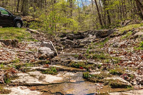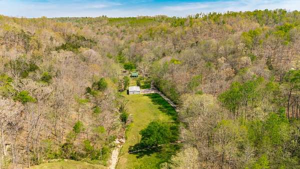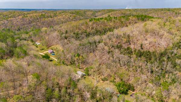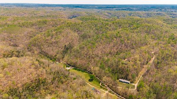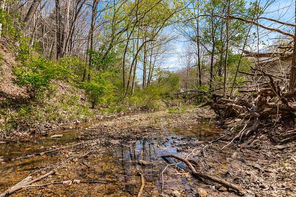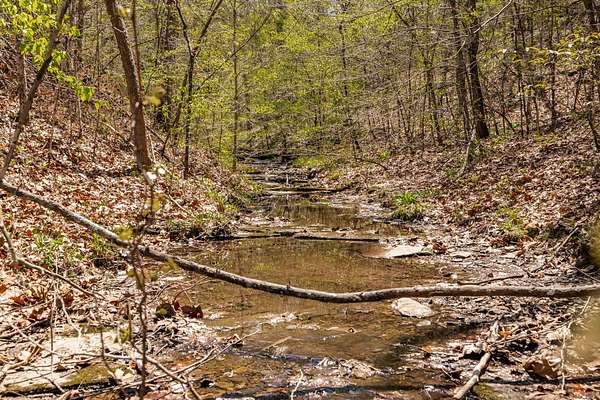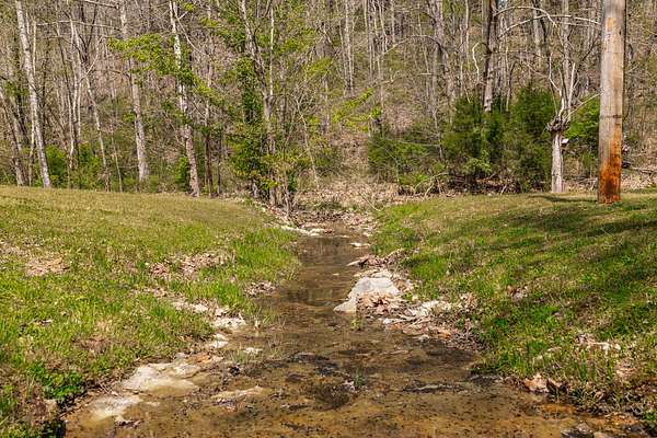 The land features approximately 3 acres of open ground near the front of the property, complemented by a year round creek and multiple wet weather creeks with a peaceful waterfall. The balance of the acreage is in mixed hardwood timber offering excellent wildlife habitat. A newly constructed road leads to the top of the hill where a private potential homesite offers elevation and scenic views of the surrounding countryside.