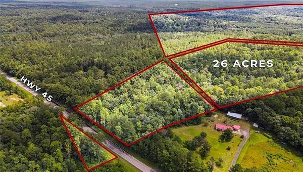 Est $1,680/mo26 acres of undeveloped land with road frontage on both Hwy 45 and Mt.Pilgrim Rd, located just off Kali Oka Rd. This property offers multiple access points and plenty of space for your future plans. No HOA restrictions. Conveniently situated with easy access to nearby schools, shopping, and major roadways. Suitable for a variety of residential uses, subject to local zoning regulations and buyer verification of intended use. Buyer to verify all information, including zoning, utilities, and intended use. All information deemed reliable but not guaranteed. Buyer to verify all information during due diligence.