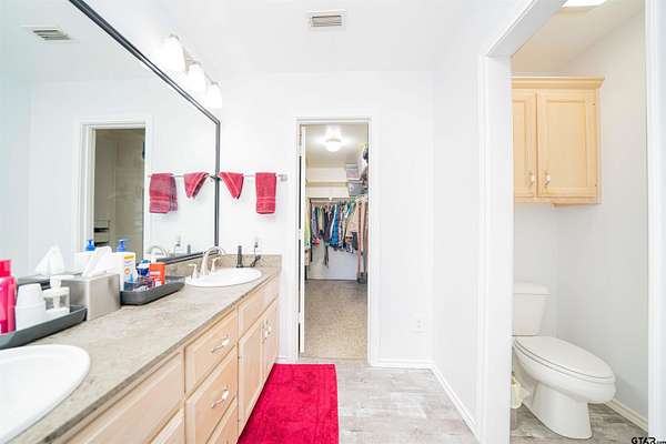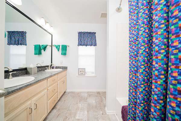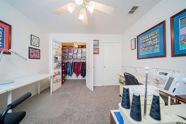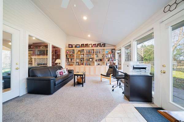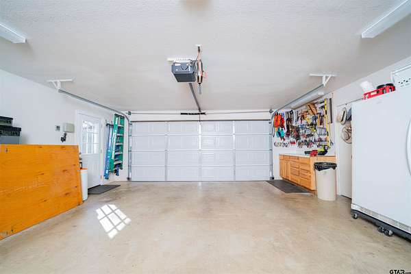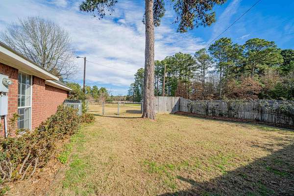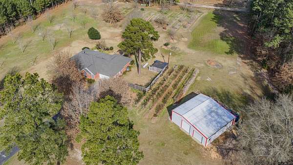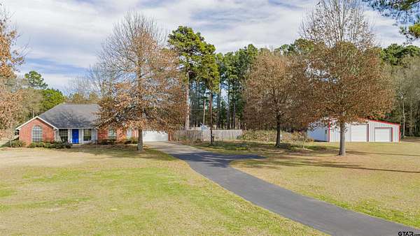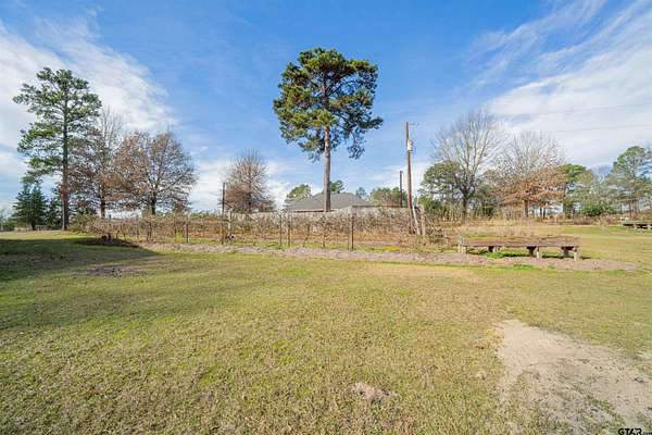 Set outside city limits on 6.141 acres in Chapel Hill ISD in Mt. Pleasant, TX. This well-maintained property offers privacy, flexibility, and exceptional setup for on/off-grid living. With road frontage on three sides, mature wooded boundaries, and both front and rear access options, the layout provides convenience and seclusion. The 4-bedroom, 2-bath home features an open kitchen, living, and dining area ideal for everyday living and entertaining. A bonus room/sunroom offers flexible use as a secondary living space, office, or hobby room. The split primary suite includes an en suite bath with separate shower and soaking tub, double vanity, and a large walk-in closet. The kitchen opens to both the dining and formal dining areas and offers abundant storage, and a walk-in pantry. Additional features include a propane fireplace, tankless propane water heater, and battery backup system wired and in place, recharged by portable solar panels. Outside, the property can be as simple or as self-sustaining as desired. Improvements include a 40x40 (1,600 sq ft) shop with power and water, a two-sided design, garden shed with power and water, and a small fenced side yard off the garage. A rainwater catchment system includes five tanks with pumps for property irrigation, plus an additional tank serving the house. The property is fully landscaped with low-maintenance, heat-tolerant plantings and features an in-ground irrigation system. Mature nut and fruit trees, blueberries, blackberries, grape and muscadine vines, a rose garden, wildflower meadow, and clover meadow support pollinators and enhance the natural setting. Mature trees line three sides of the property for added privacy.